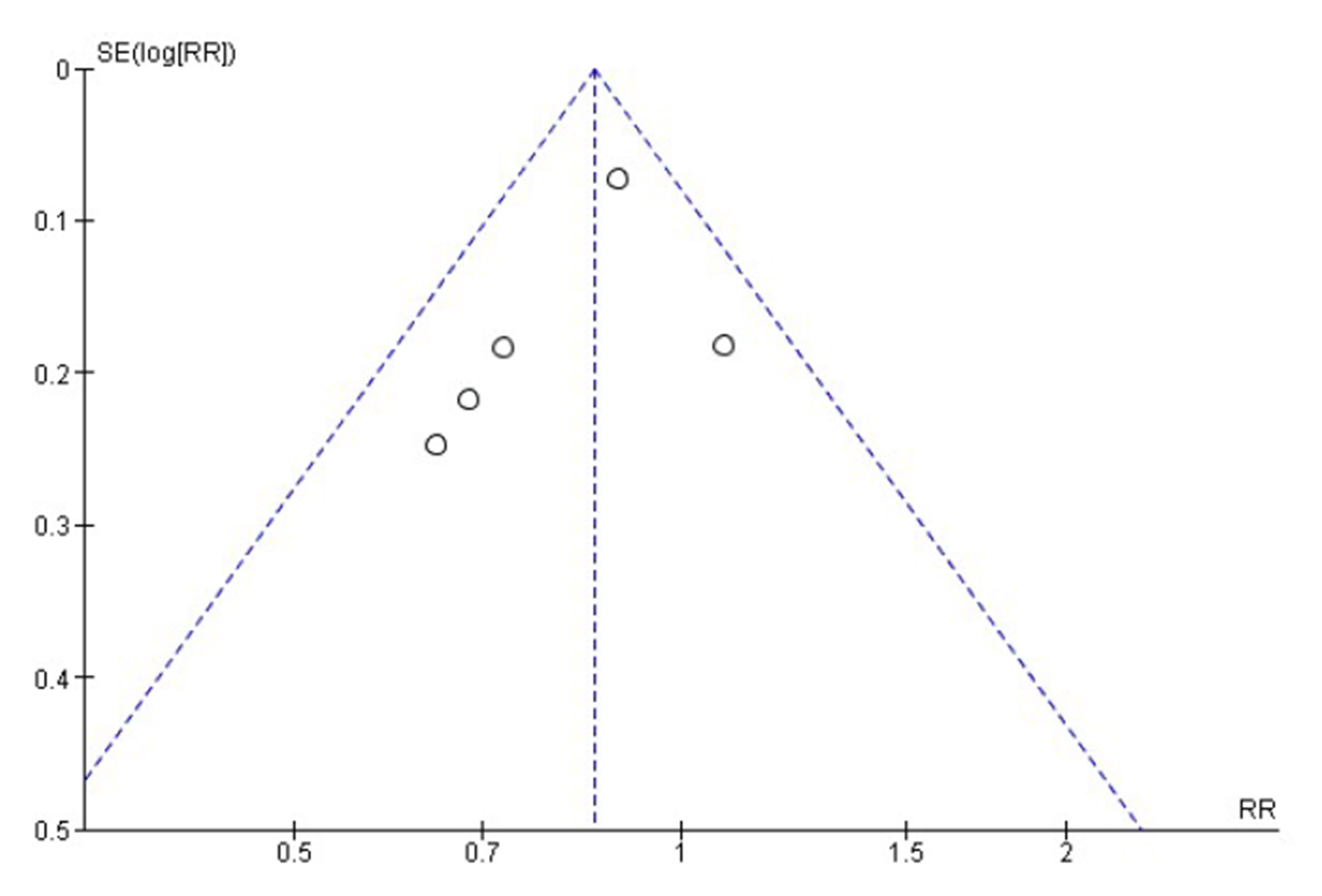 Fig. 2.Funnel plot analysis for publication bias. RR, Risk ratio; SE, Standard error.