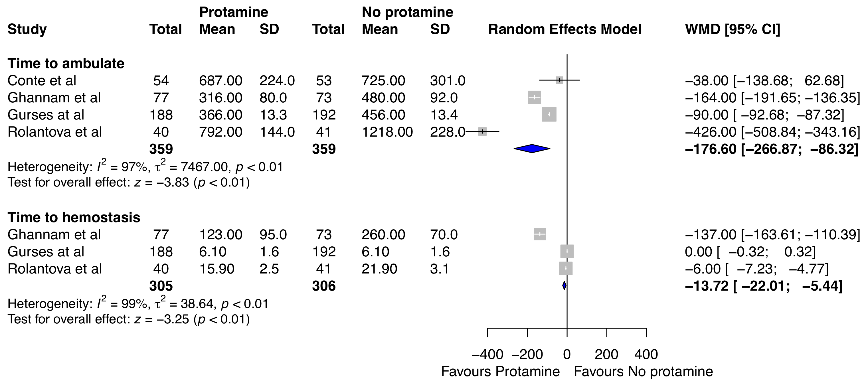 and meta-analysis to determine the effectiveness of protamine to expedite