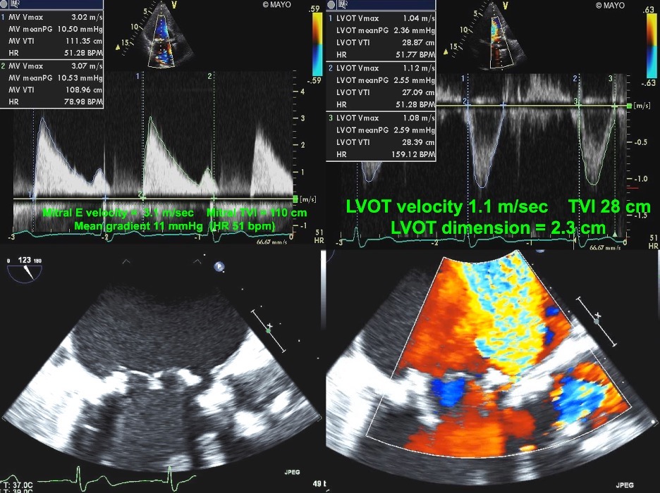 and lightheadedness. The mean gradient was 12 mmHg with a heart rate of 51 and a
