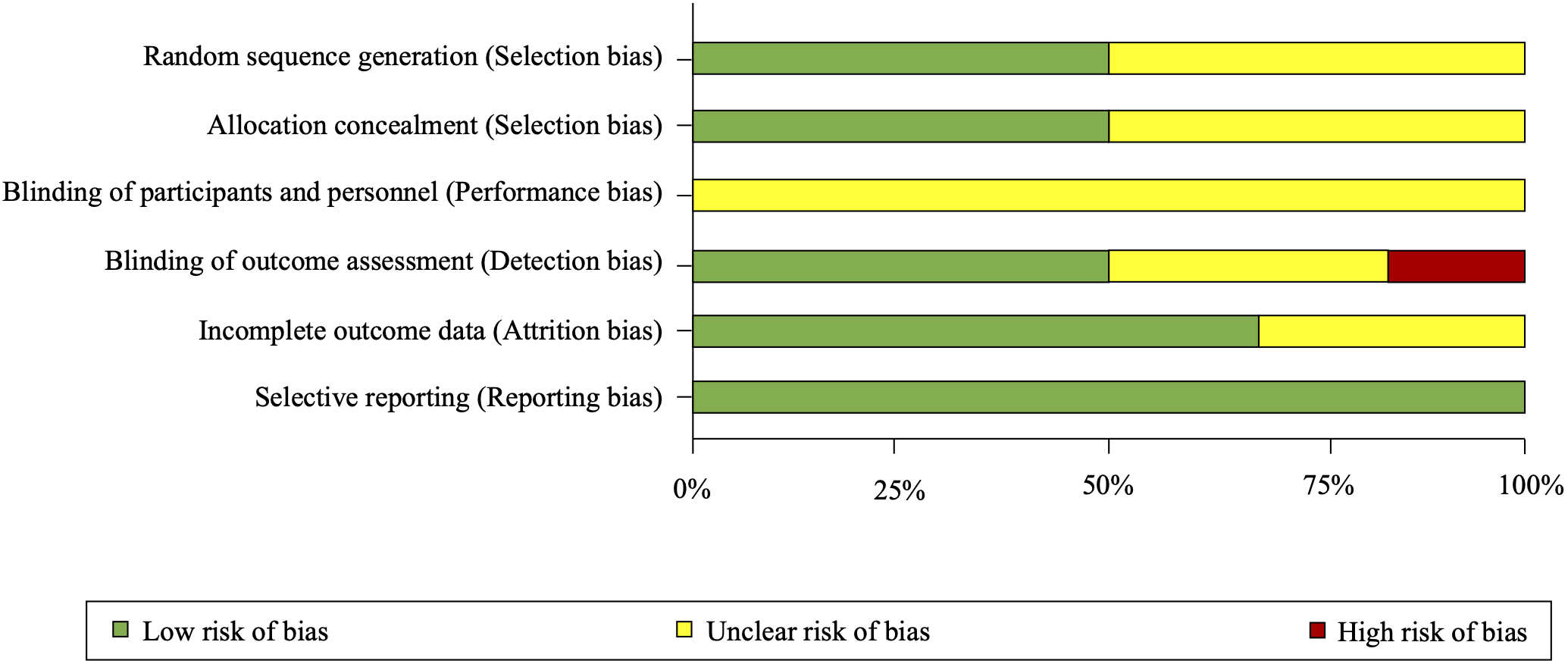 Fig. 2.Risk of bias summary as percentages across all included randomized trials.