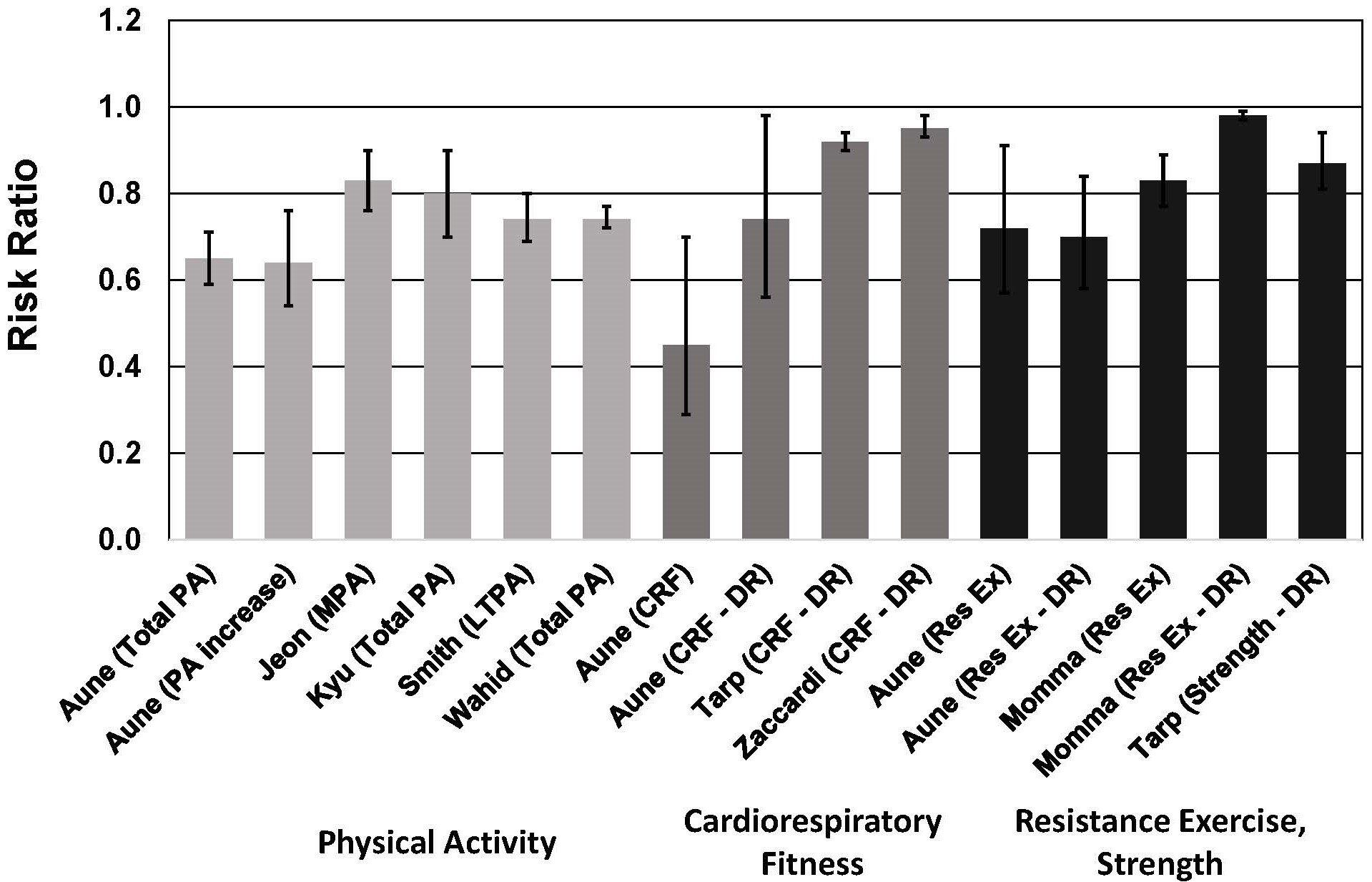 exercise and muscular strength. See text for description of meta-analyses.