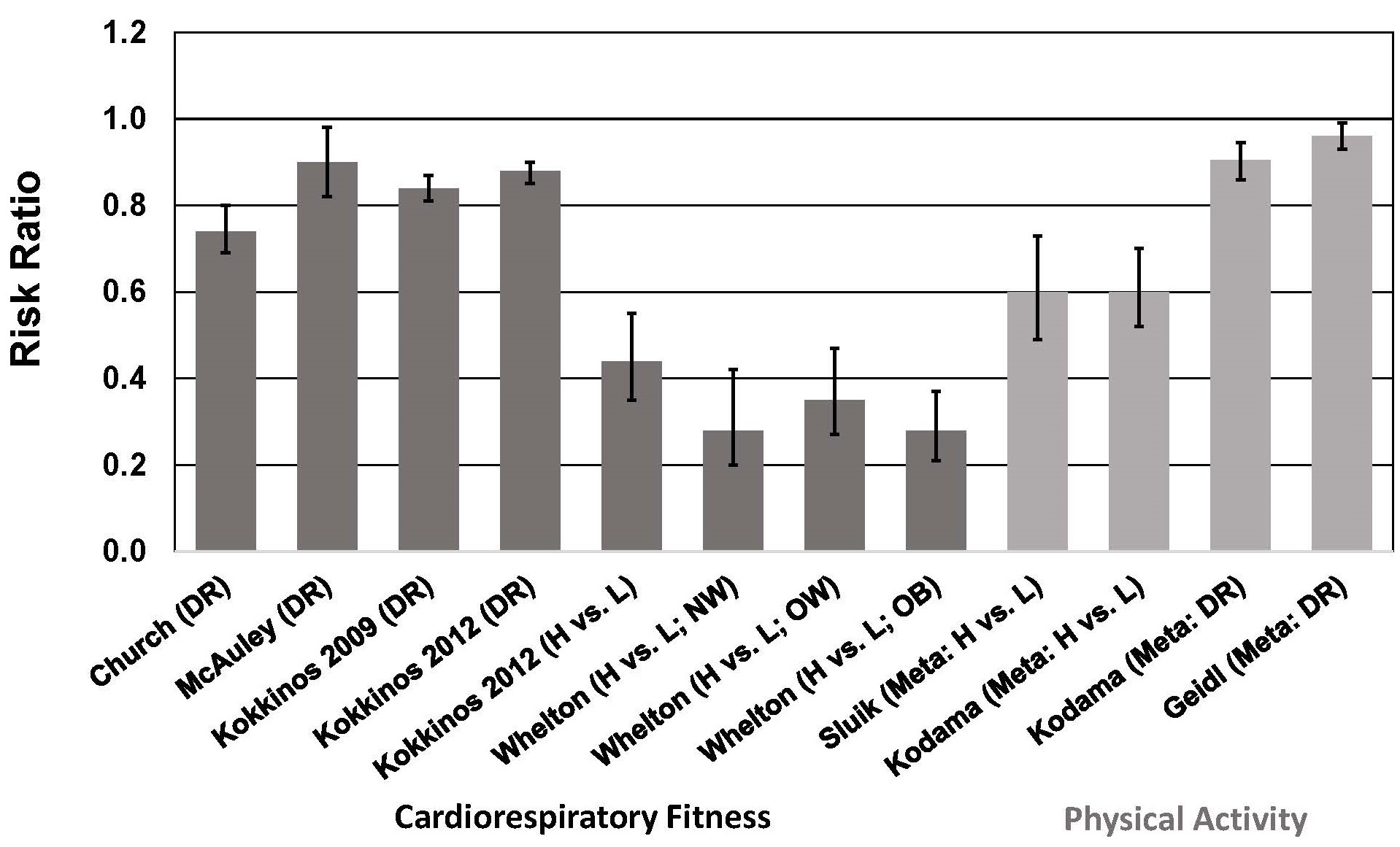 meta-analyses included any measure of CRF, which is strongly inversely associated