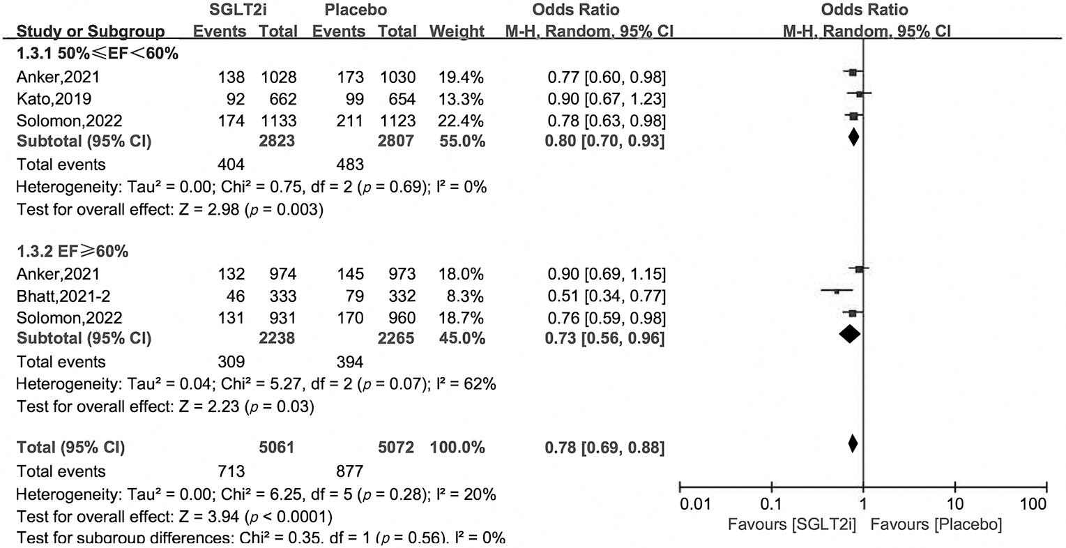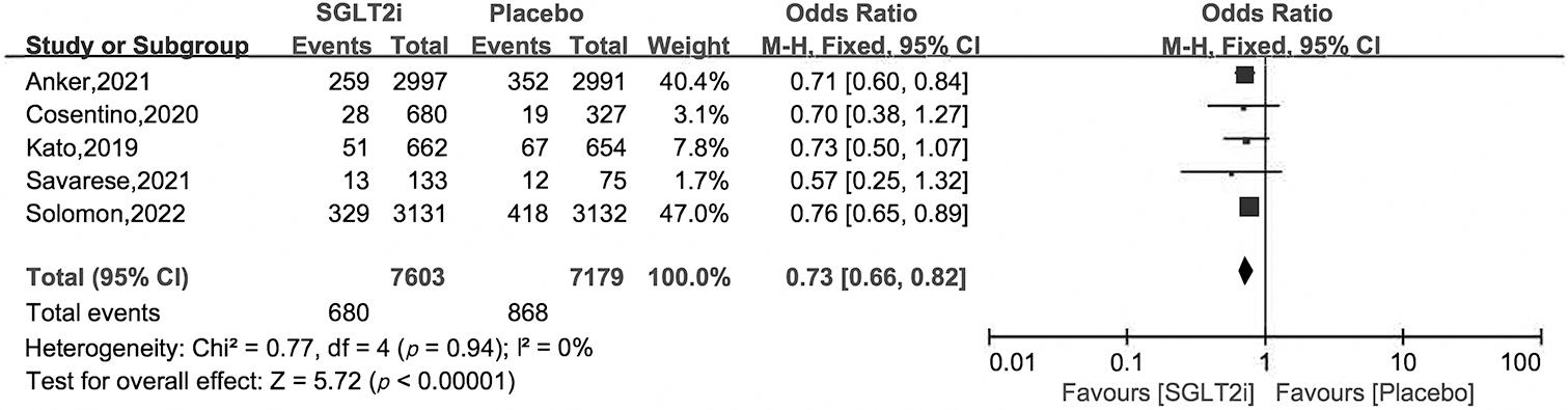 Fig. 5.Hospitalization for heart failure of SGLT2i vs. placebo in HFpEF patients.