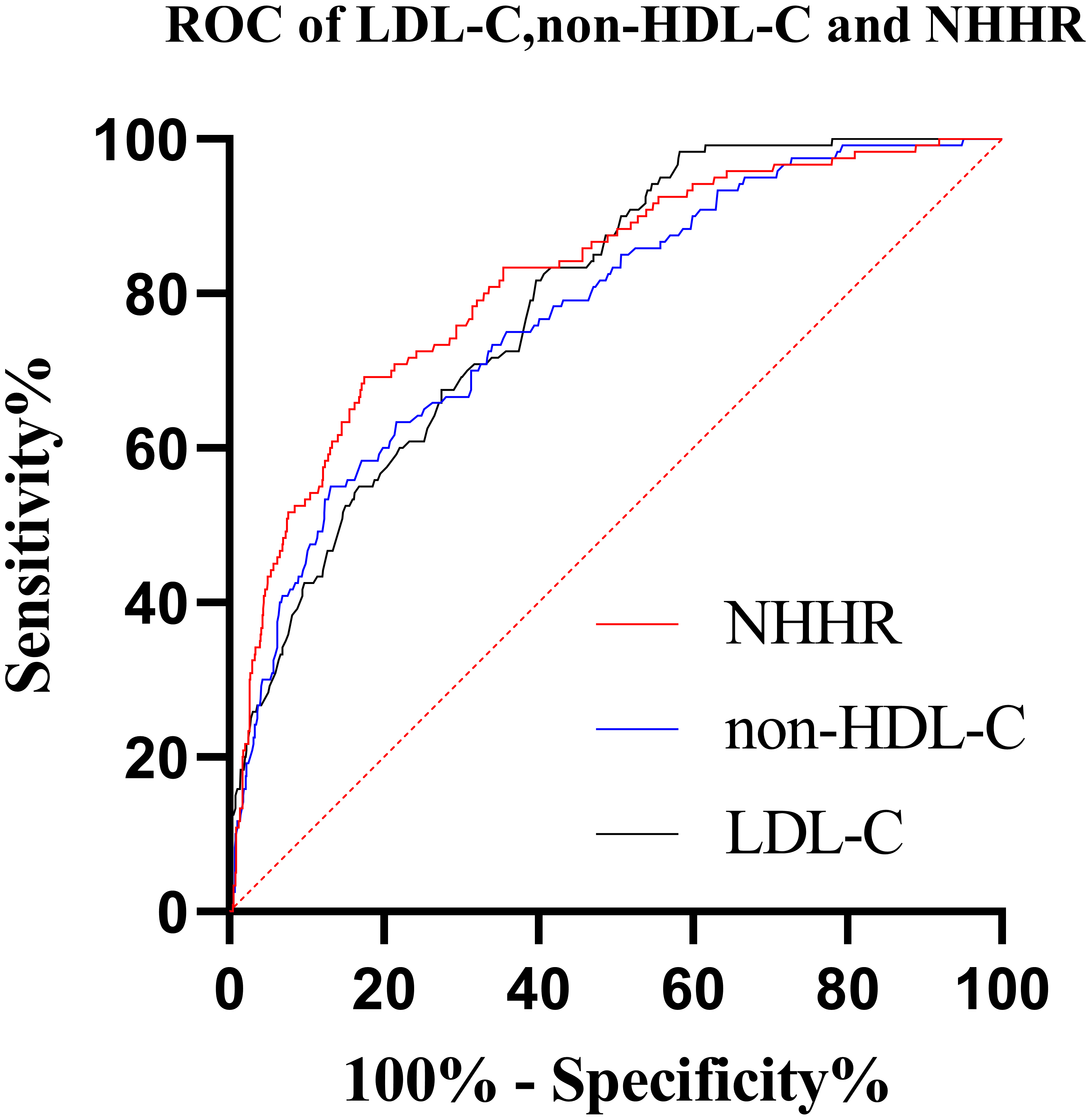 Fig. 2.ROC curves of patients’ LDL-C, non-HDL-C, and NHHR.