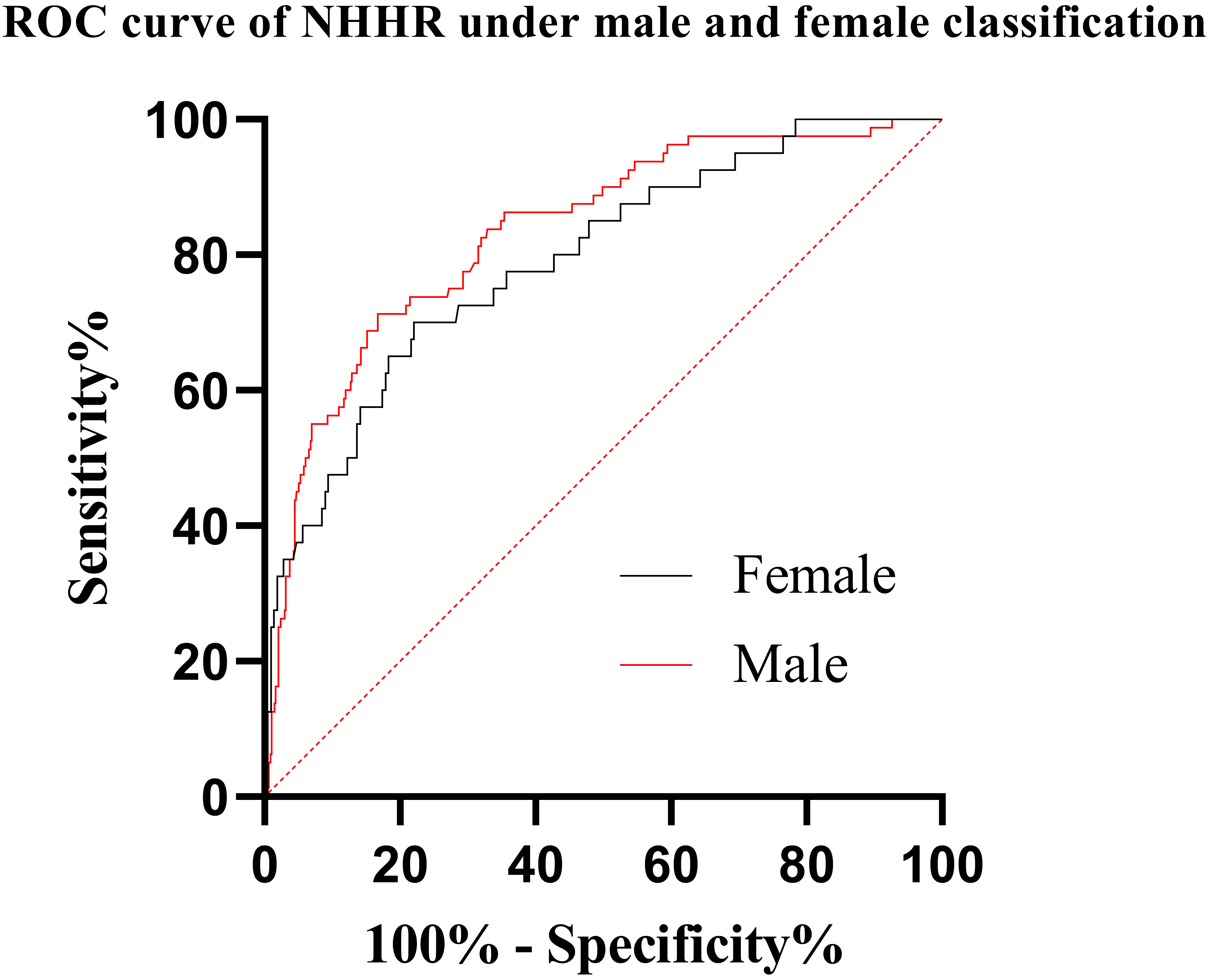 Fig. 3.ROC curve of NHHR under male and female classification.
