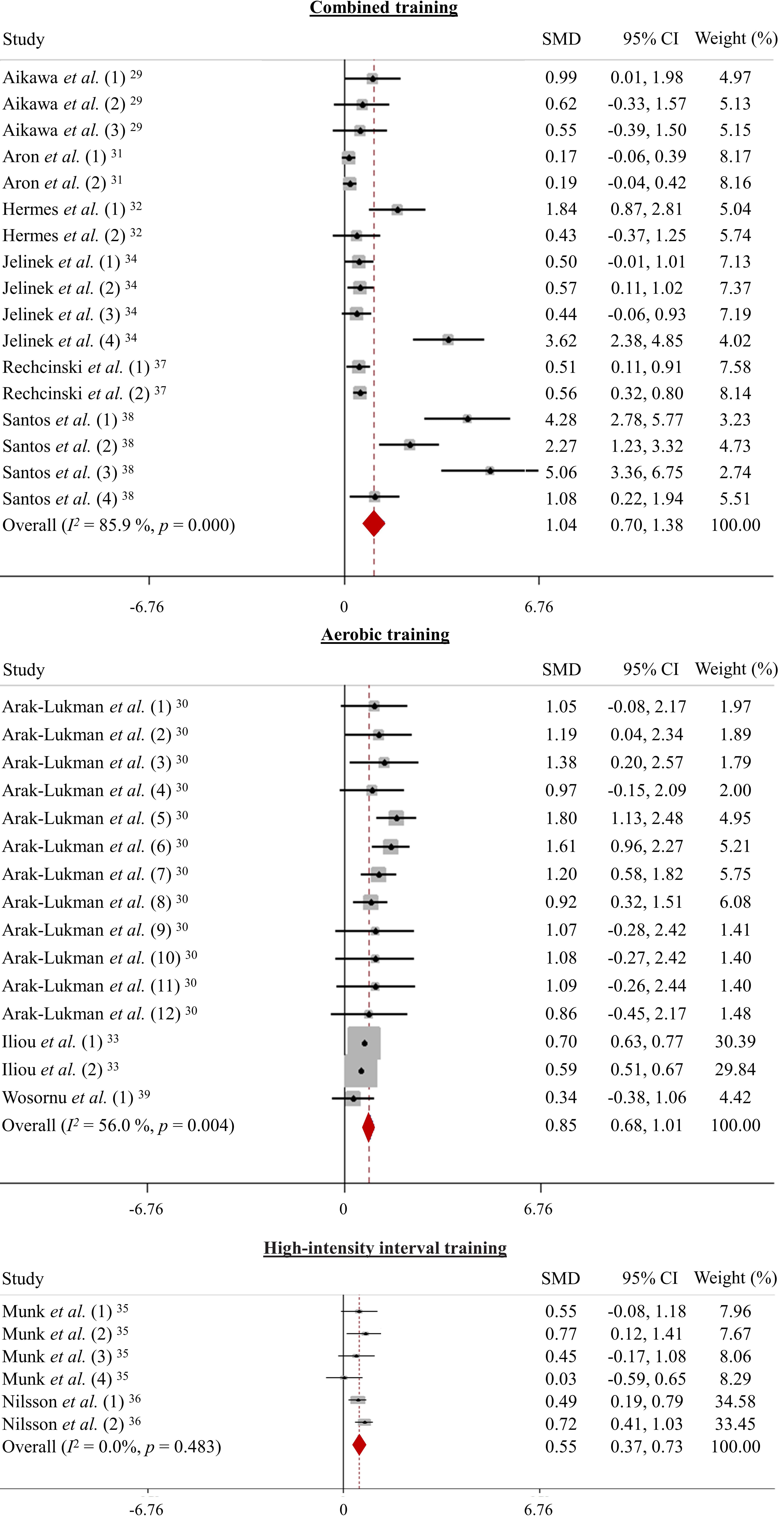 effect size was 0.85 (95% CI 0.68, 1.01), which indicates that aerobic training