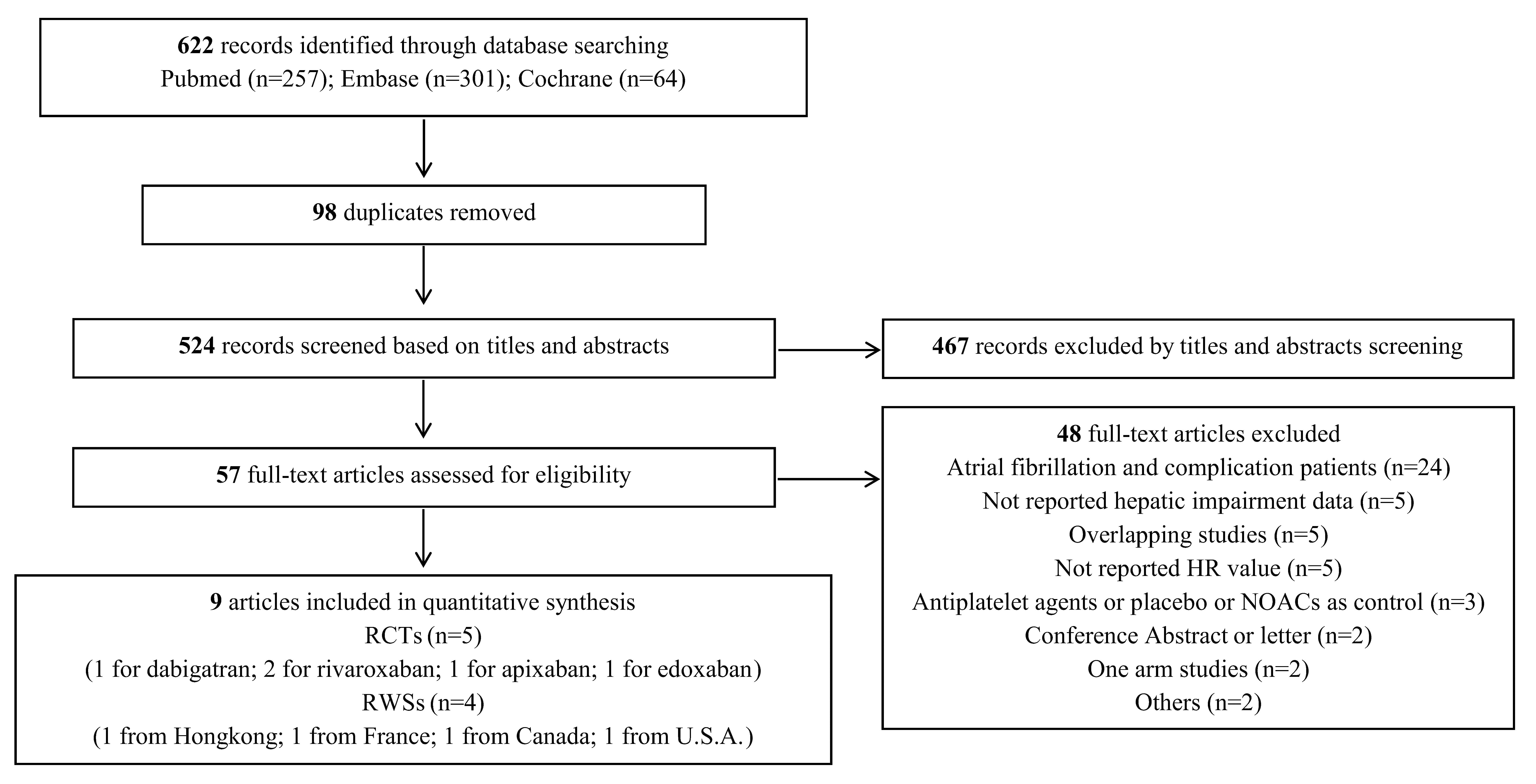 Fig. 1.Flow chart for selection of eligible studies. HR, hazard ratio; NOACs, non-vitamin K antagonist oral anticoagulants; RCTs, randomized controlled trials; RWSs, real-world studies; U.S.A., United States of America.
