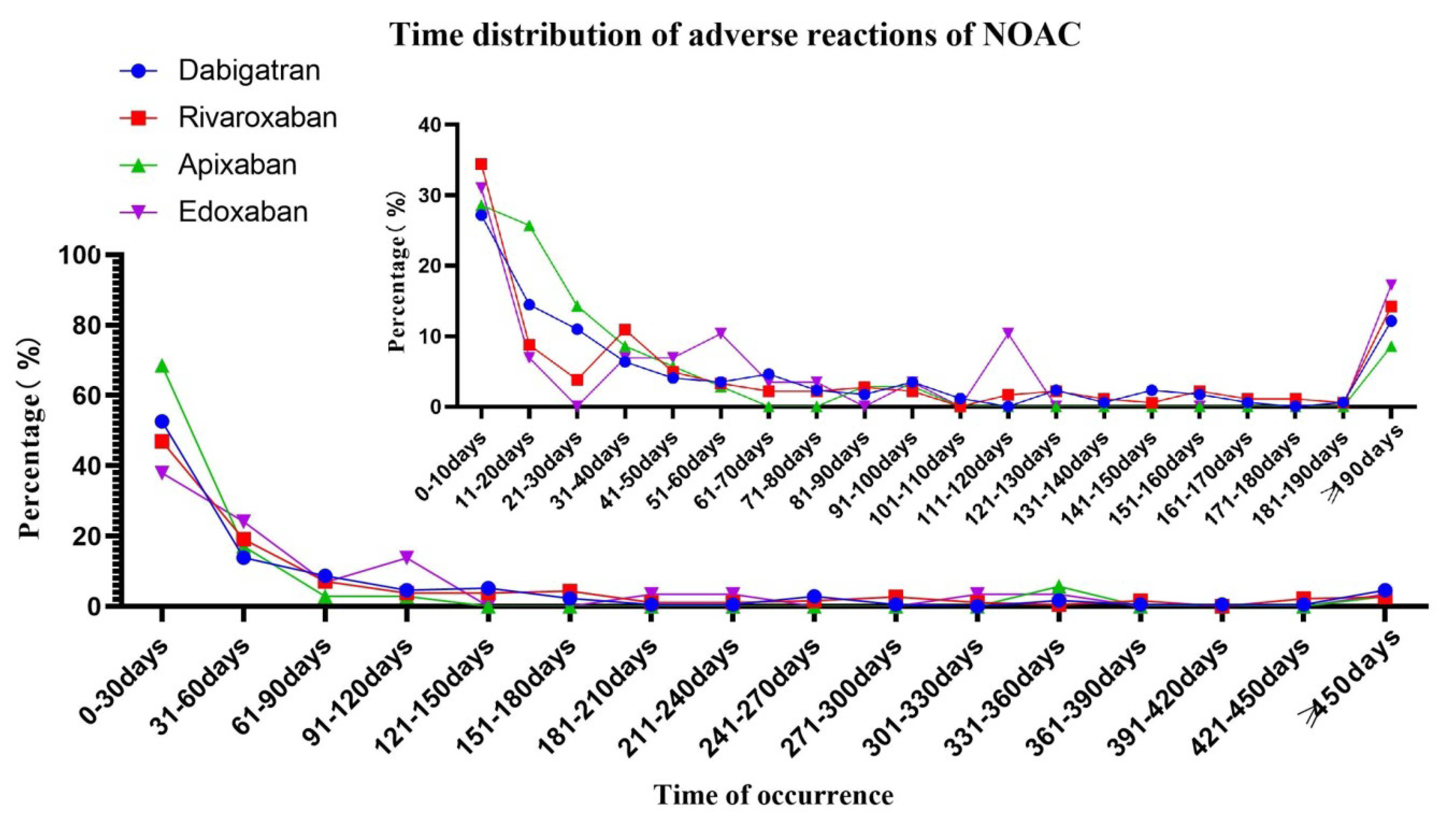 Fig. 4.Time distribution of hepatic impairment with NOACs. NOACs, non-vitamin K antagonist oral anticoagulants.