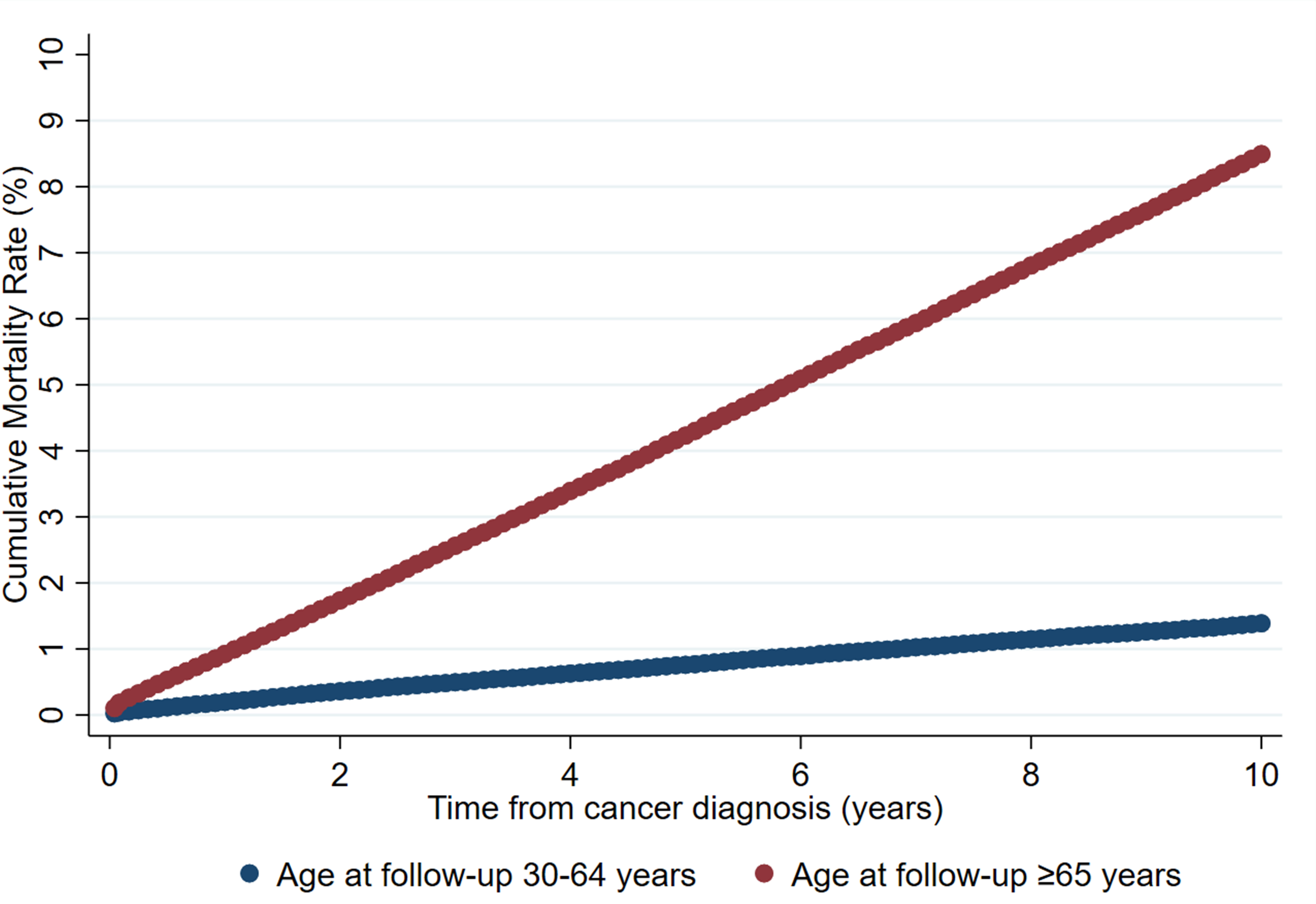 the age of follow-up 55–64 years, compared with general population [15]. Our