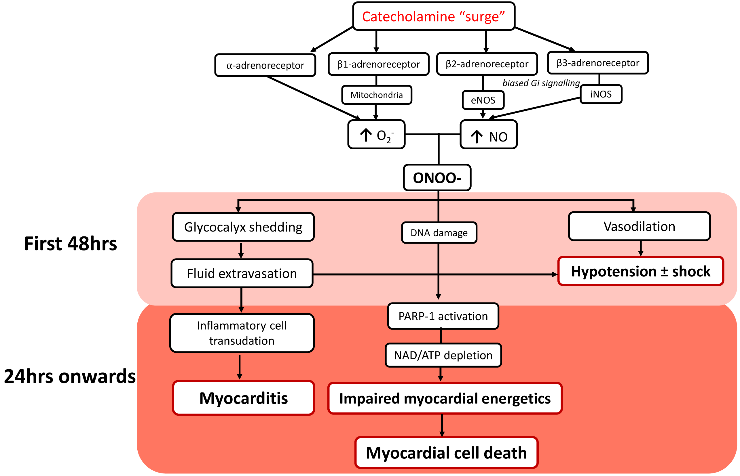 Fig. 1 is a schematic representation of key aspects of TTS pathophysiology, as currently recognised, with emphasis on the potential for a sequential process, initially affecting vasculature and then myocardium.