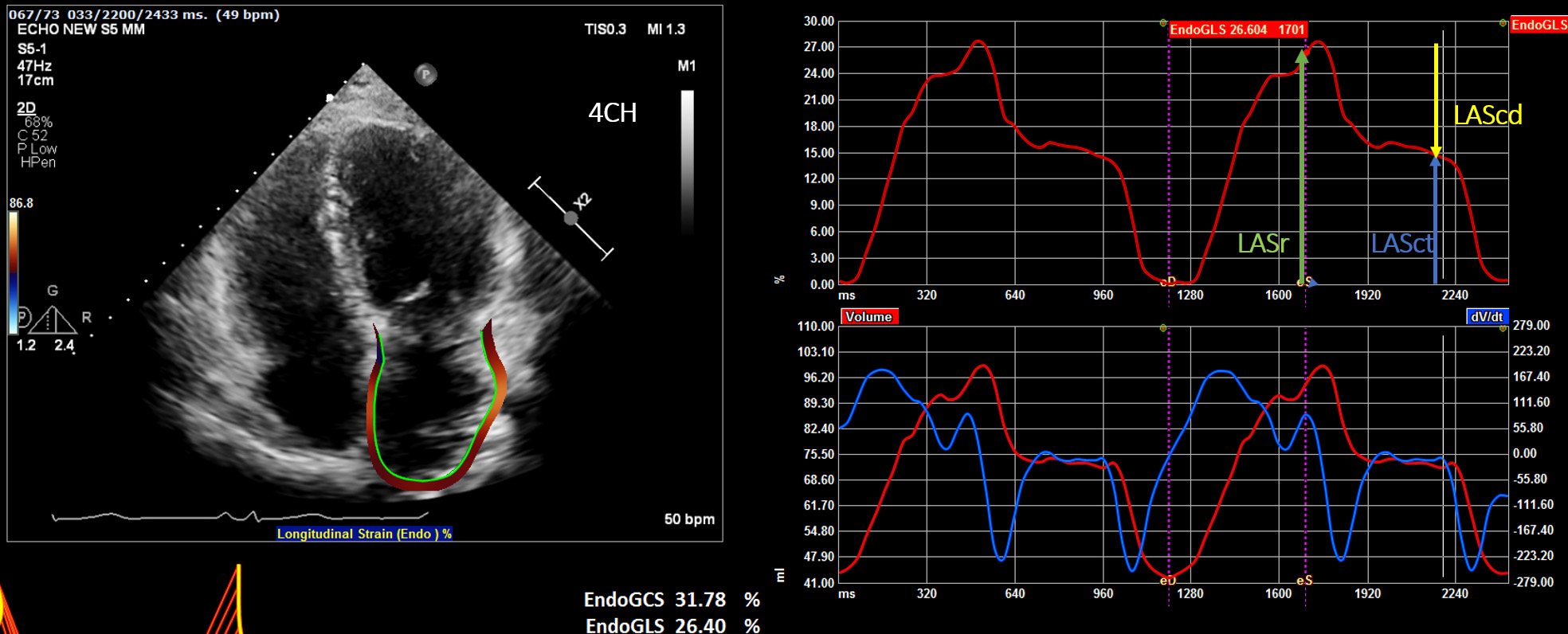 The same research group [84], demonstrated that atrial strain analysis (LASr)