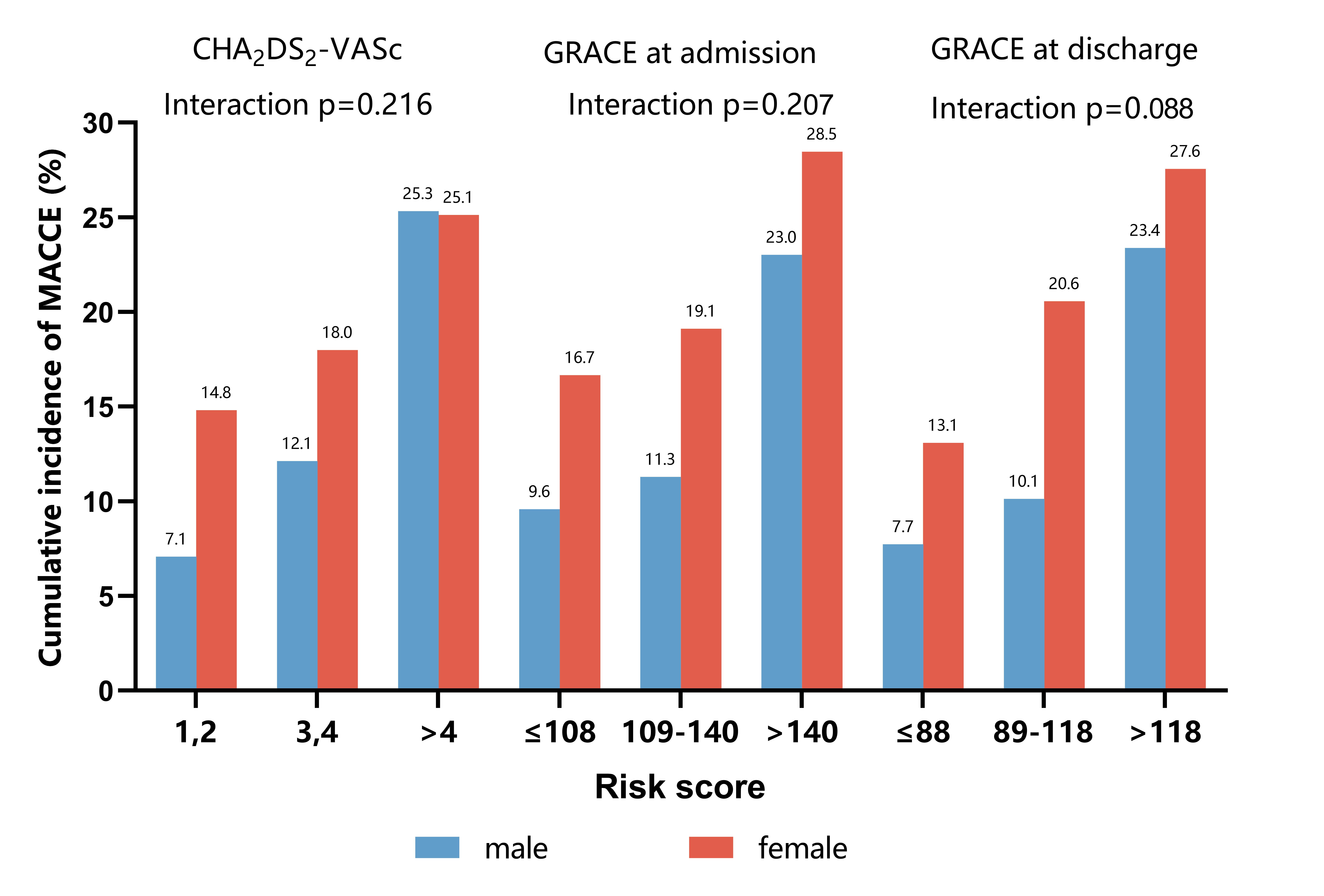 Fig. 3.Cumulative incidence of MACCEs according to sex during 36 months
