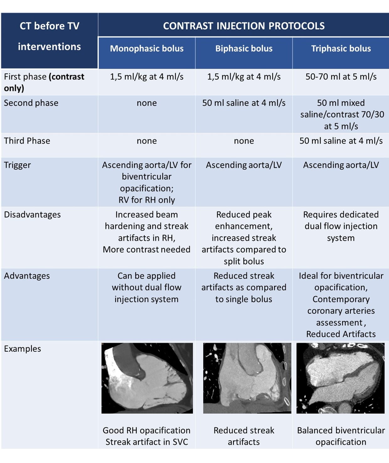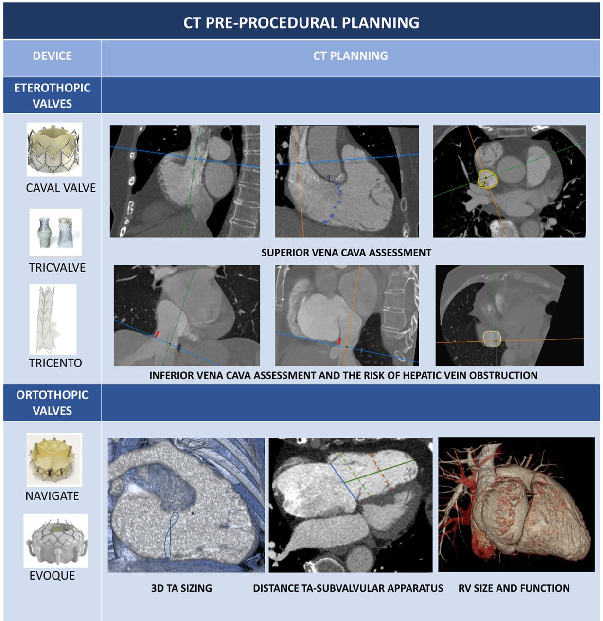 A great variety of prostheses has been developed for the TV, with a great variability of pre-procedural planning CT protocols. In most cases each device has a specific acquisition protocol, and the images are then analysed by the manufacturer’s Core-lab.