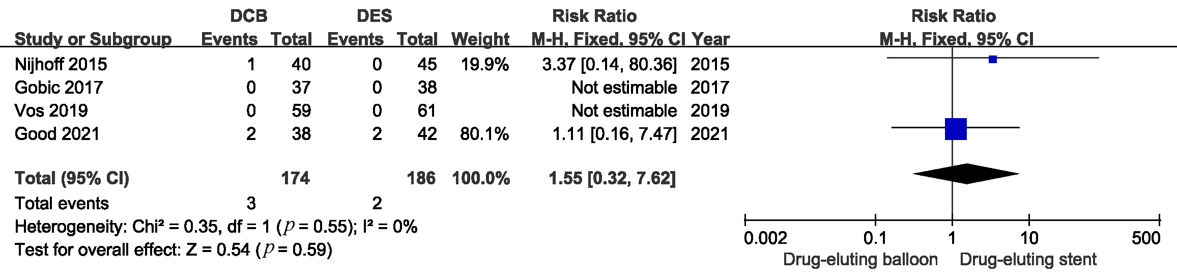 death (RR 1.55, 95% CI: 0.32 to 7.62, p = 0.59), and target lesion