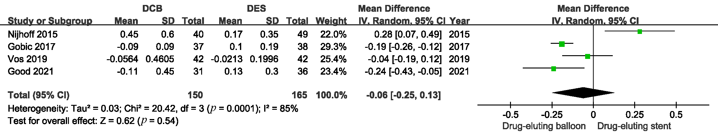 results indicated that DCB was comparable to DES in terms of LLL with an MD of