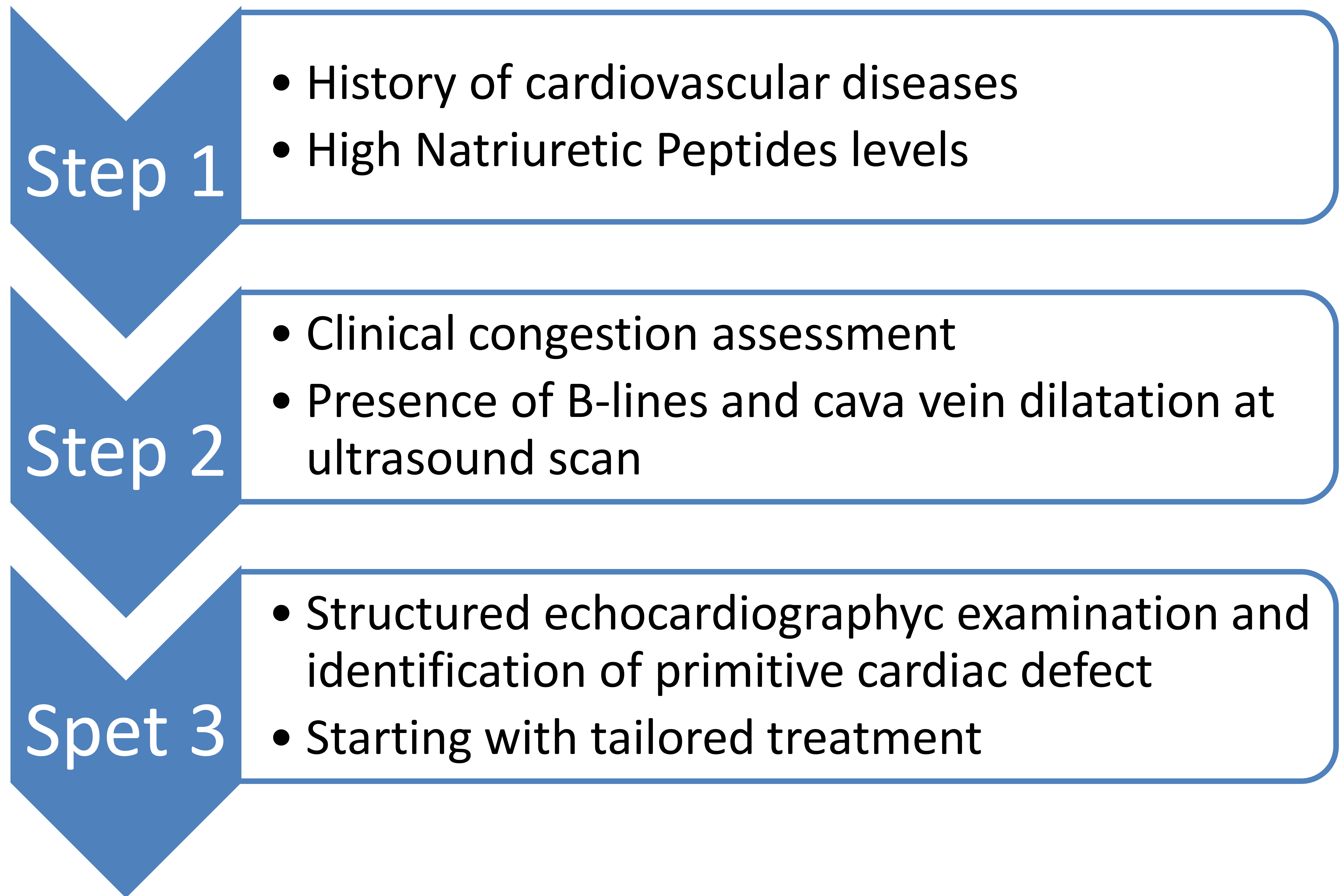 Fig. 3.A stepwise approach may be applied in patients with suspected HF or ARDS starting from clinical examination and blood test up to a more detailed diagnostic screening based on initial screening.