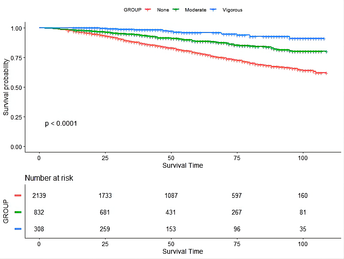 KM curve (Fig. 3) indicated that the groups who engaged in different physical