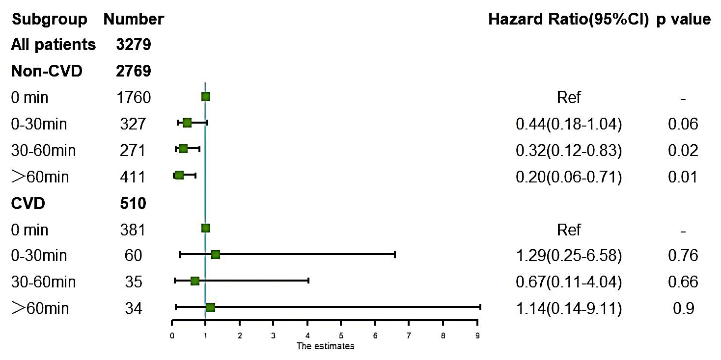 all-cause death in patients without CVD (Fig. 5) (0–30 min/d: HR: 0.44, 95% CI: