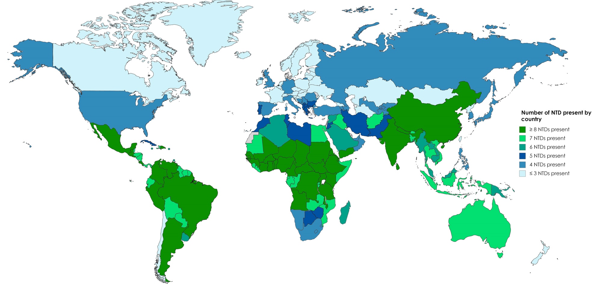Fig. 1.Global burden of NTDs by country. NTDs, Neglected tropical diseases. Data from World Health Organization Control of Tropical Neglected Disease. Modified from Burgos LM, et al. Glob Heart. 2020; 15: 60 [1].