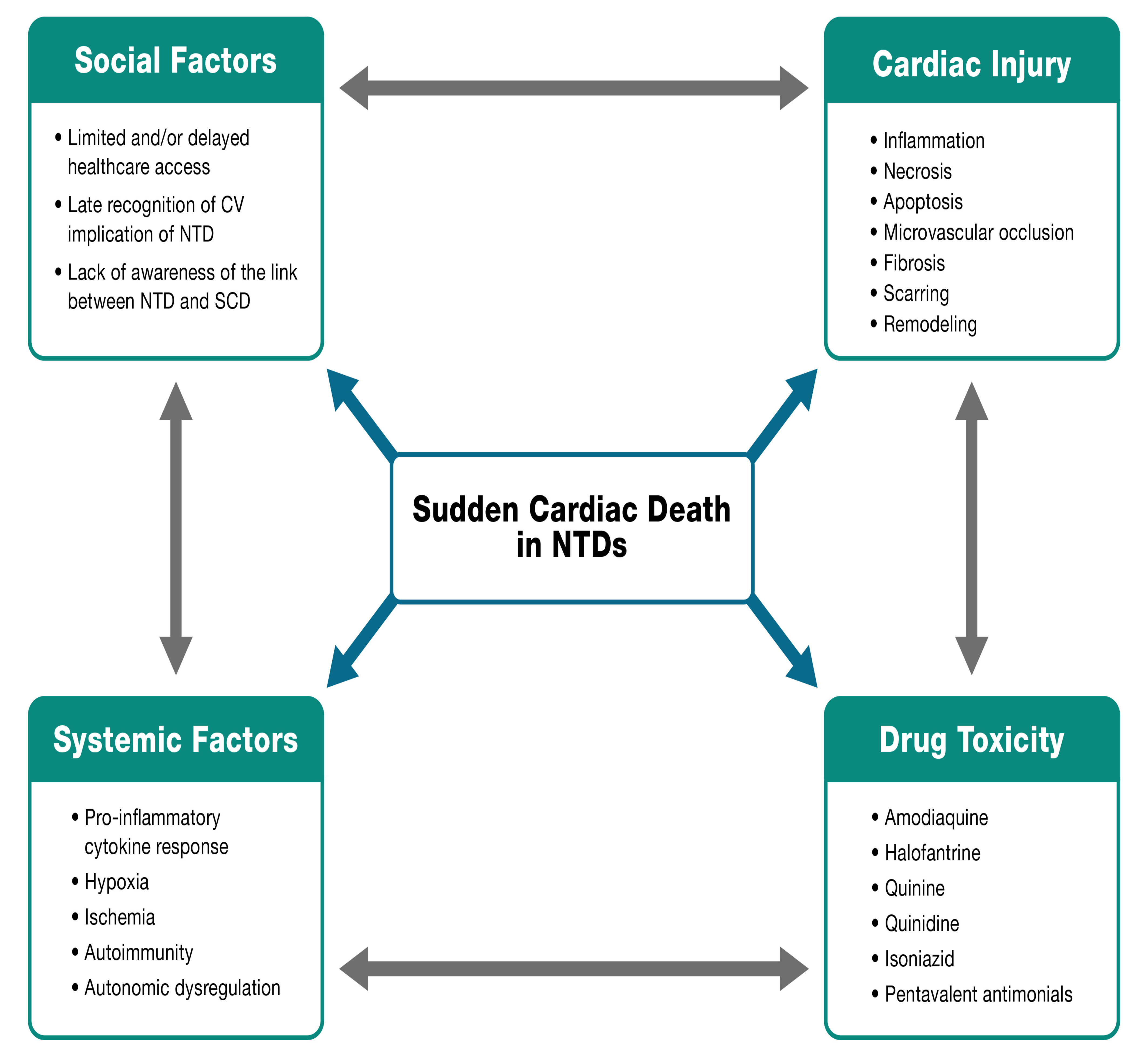 Fig. 4.NET Heart’s deadly quartet of SCD in NTDs. CV, cardiovascular.