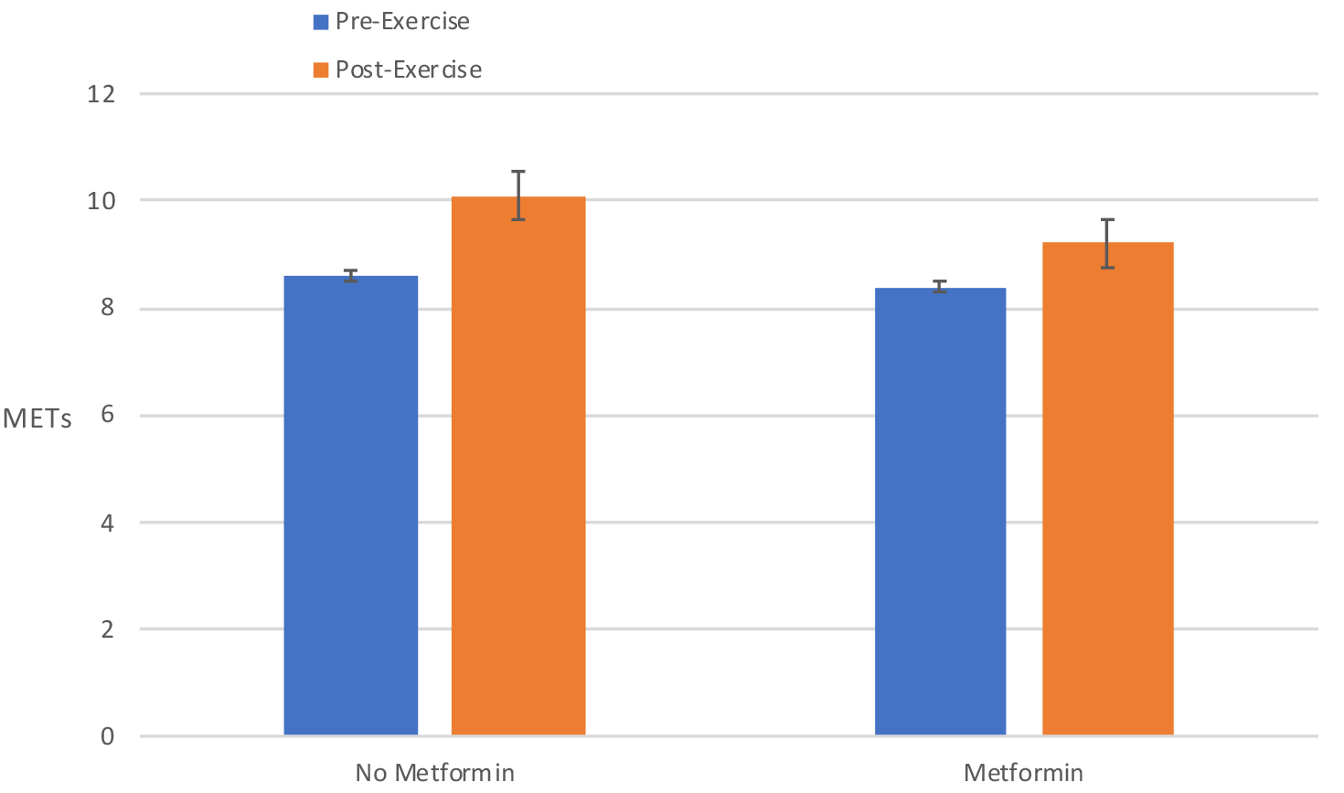 post-exercise CRF which increased by 19% in those not on metformin and 12% in