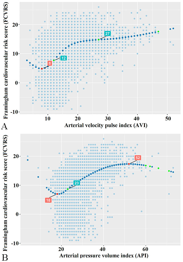 The Framingham cardiovascular risk score (FCVRS) has contributed to the identification of cardivascular risk factors [10]. Several major studies have found associations between AVI, API value and FCVRS risk score. For the most part, high arterial stiffness is associated with a trend towards increasing CVD risk [11].