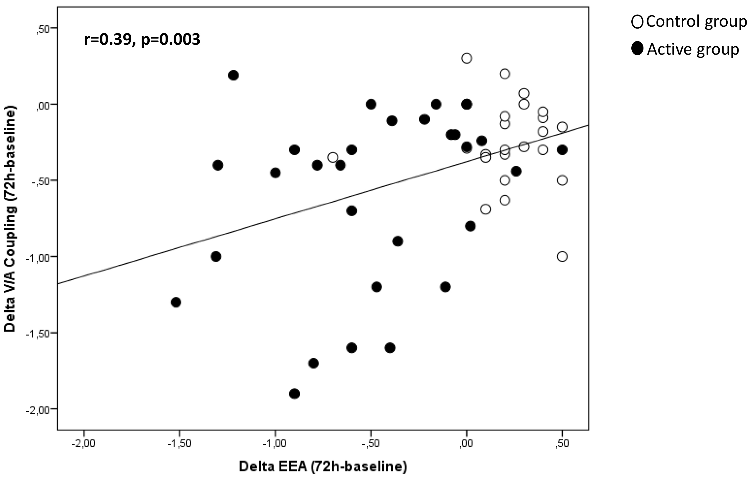Fig. 3.Correlation between EAA and V/A coupling in the study population.