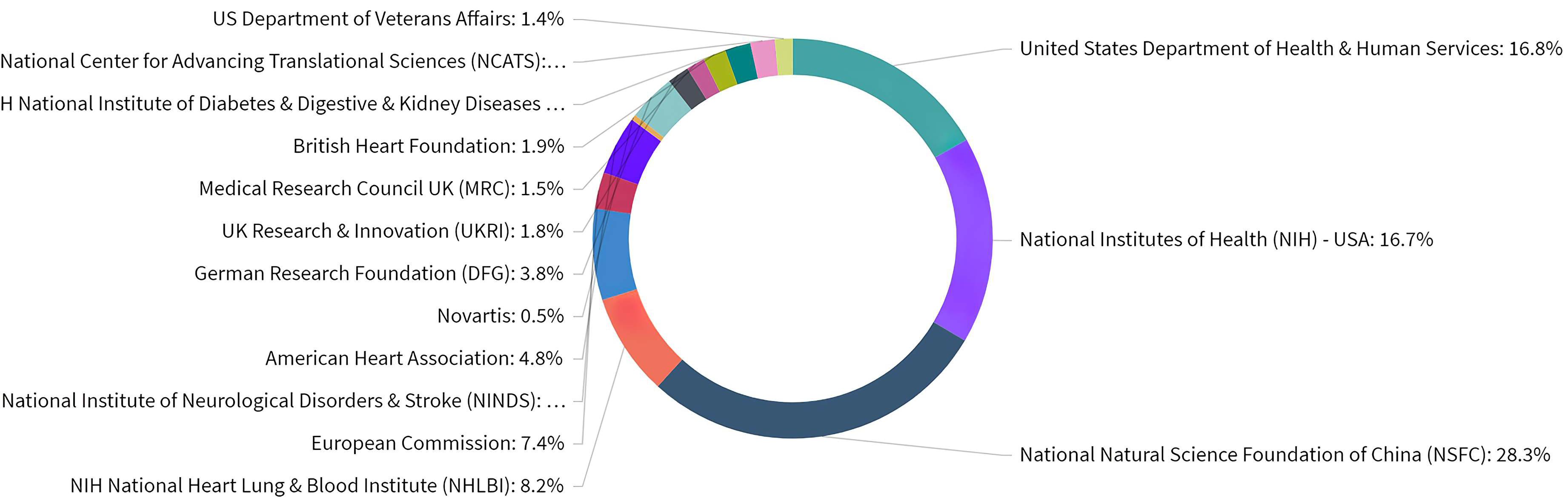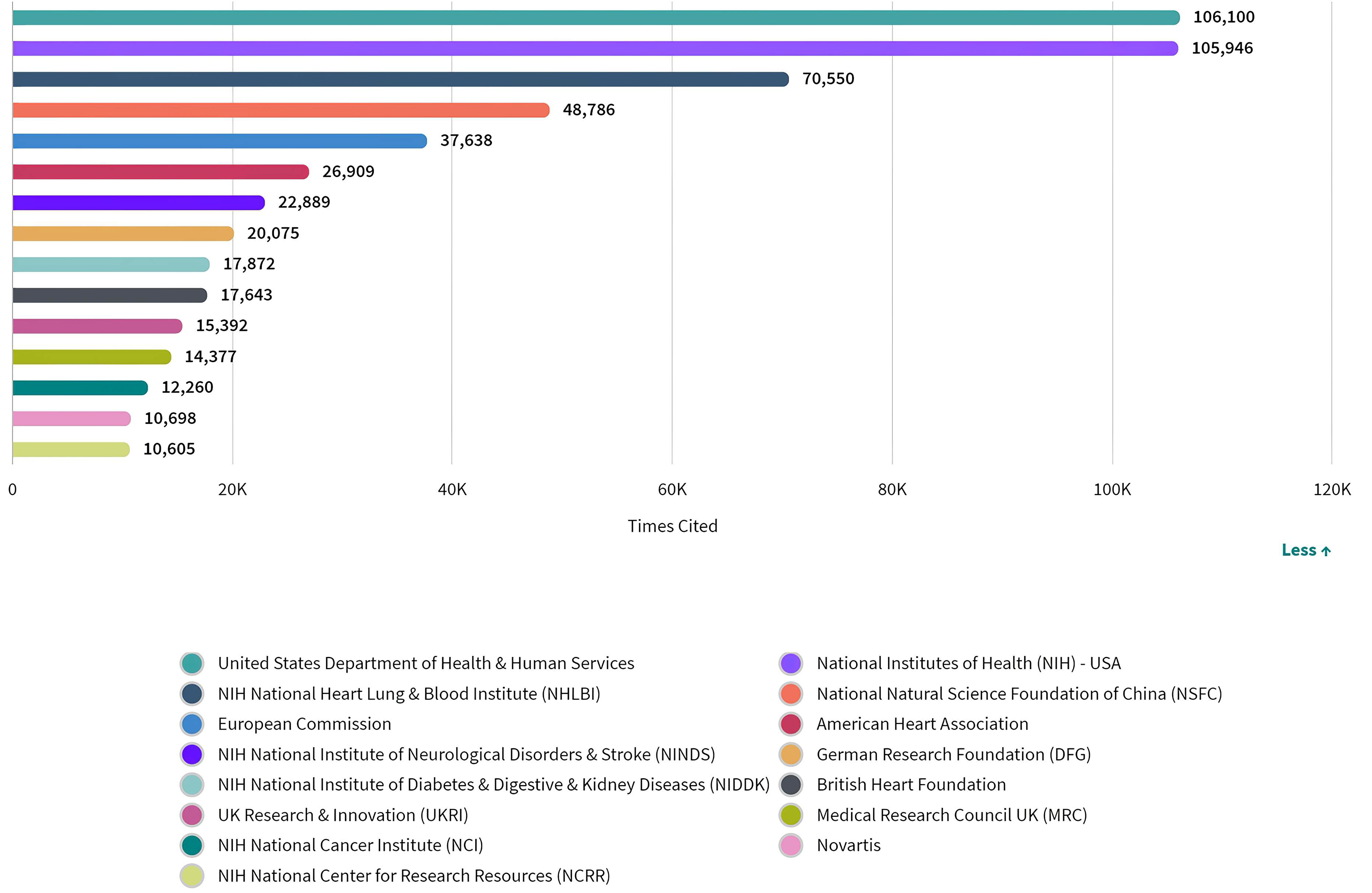 To show acknowledged funders of published research, InCites, available in Web of Science, was used to analyze the resulting publication set.