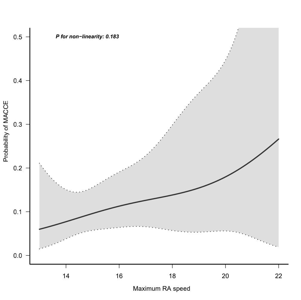 With the expansion of the social economy and the aging population, the incidence of coronary heart disease (CHD) is increasing year by year, and the proportion of coronary calcification lesions has dramatically increased. Since early 1990s, rotational atherectomy (RA) has been the mainstay tool used to effectively debulk and modify calcified plaques, increasing the lumen area, facilitating the delivery of intraoperative balloons and stents, as well as improving stent expansion and apposition, thereby increasing the success rate of percutaneous coronary intervention (PCI) [1, 2, 3]. The rotation speed varies considerably among different interventional cardiologists (140,000 to 220,000 rpm) in clinical practice [4, 5, 6]. Moreover, there is limited data on the relationship between RA speed and long-term prognosis in patients with CHD, and determination of the optimal rotation speed remain controversial.
