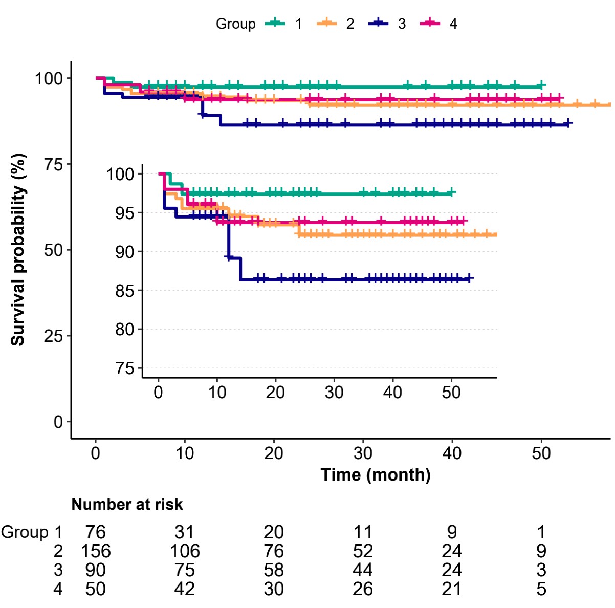 | Variables | Total (n = 372) | Group 1 (n = 76) | Group 2 (n = 156) | Group 3 (n = 90) | Group 4 (n = 50) | p value |