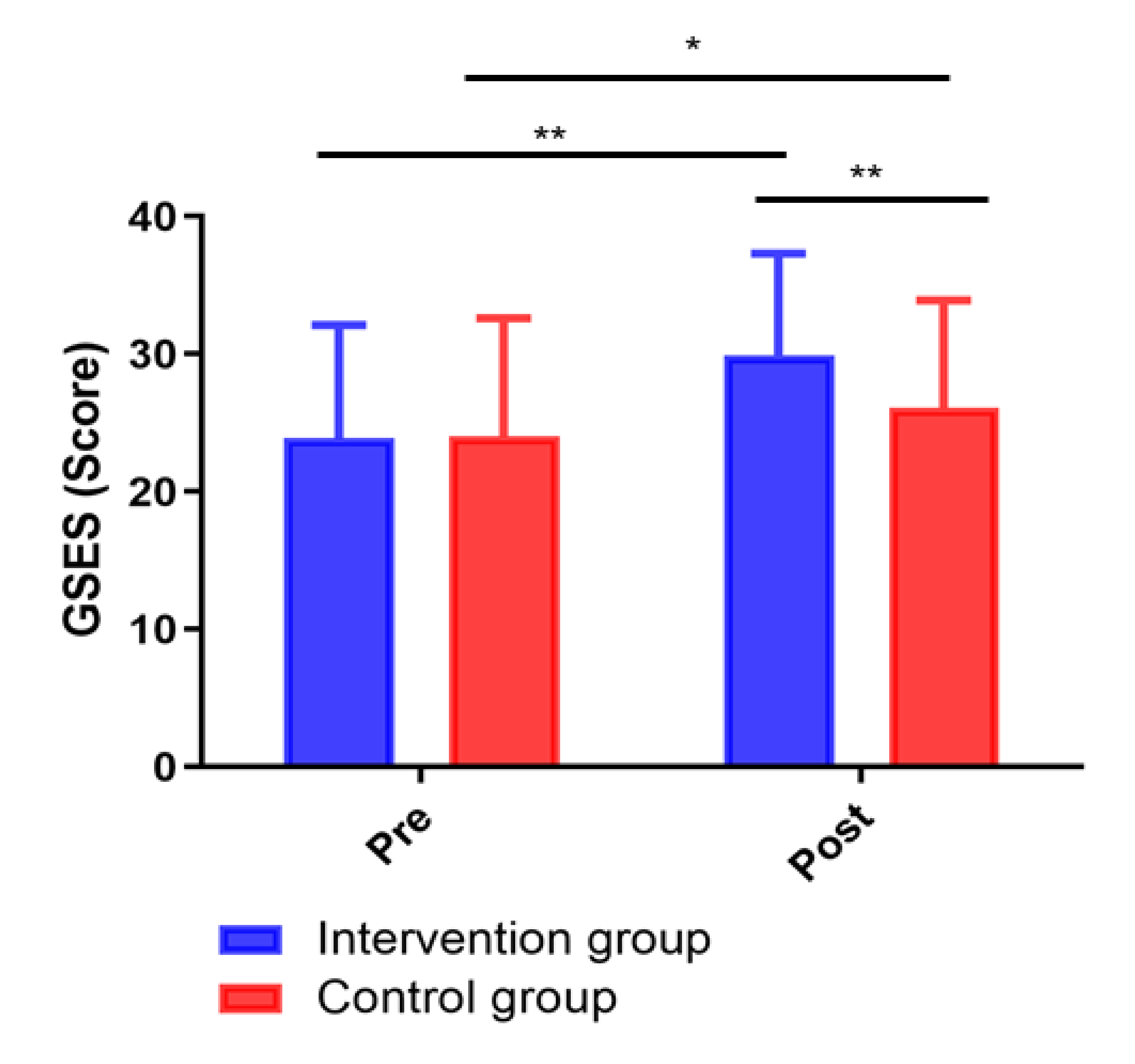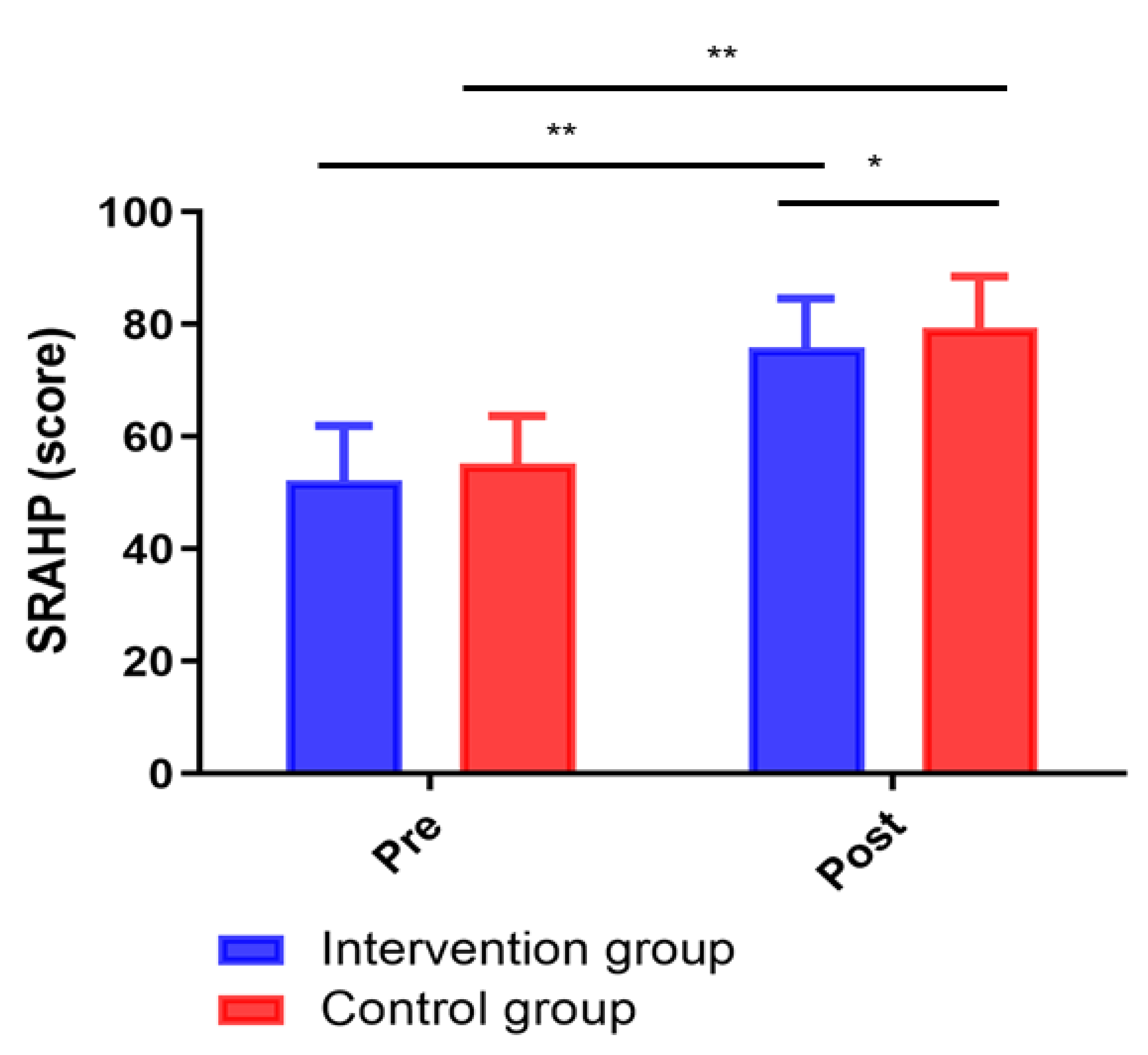 Fig. 4.Changes in SRAHP scores between groups. *p