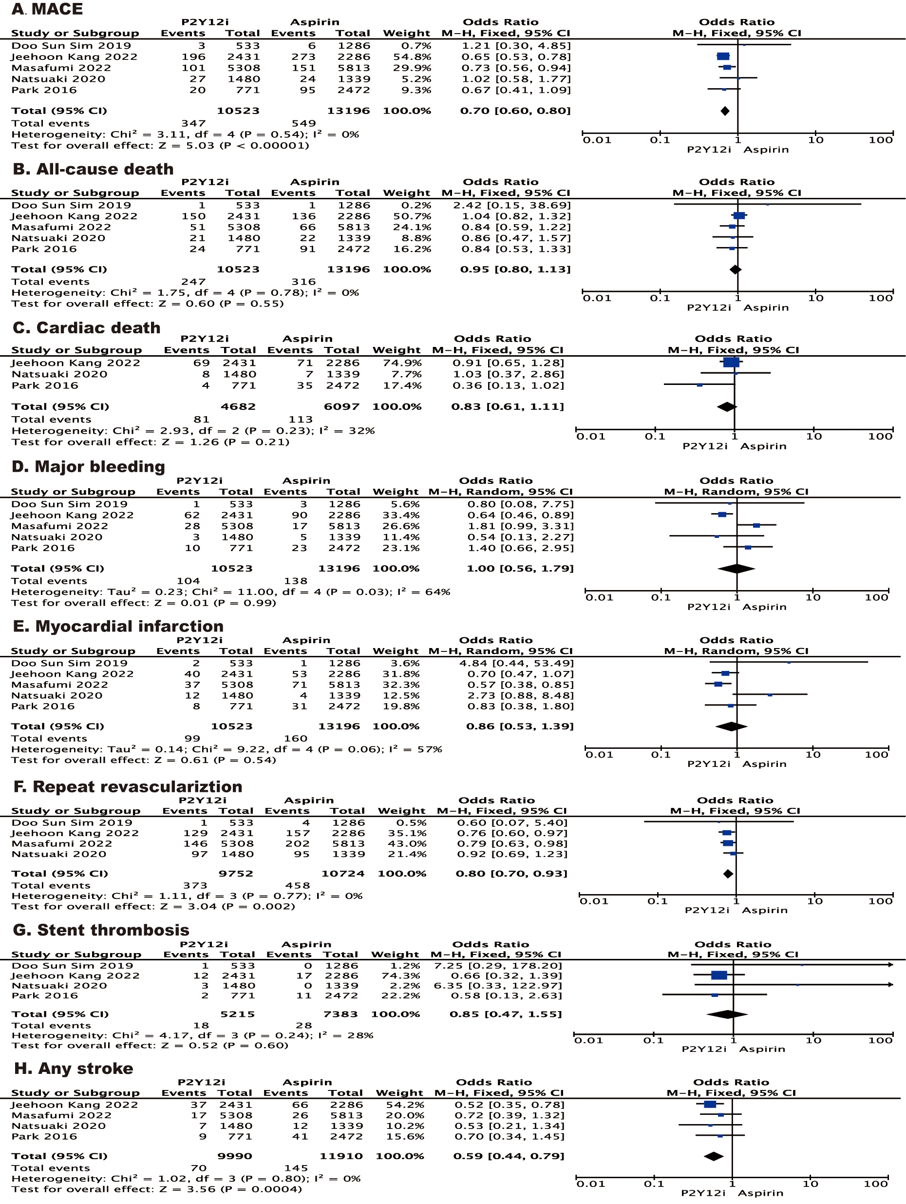 P2Y inhibitor. Forest plot reporting the odds ratios of P2Y