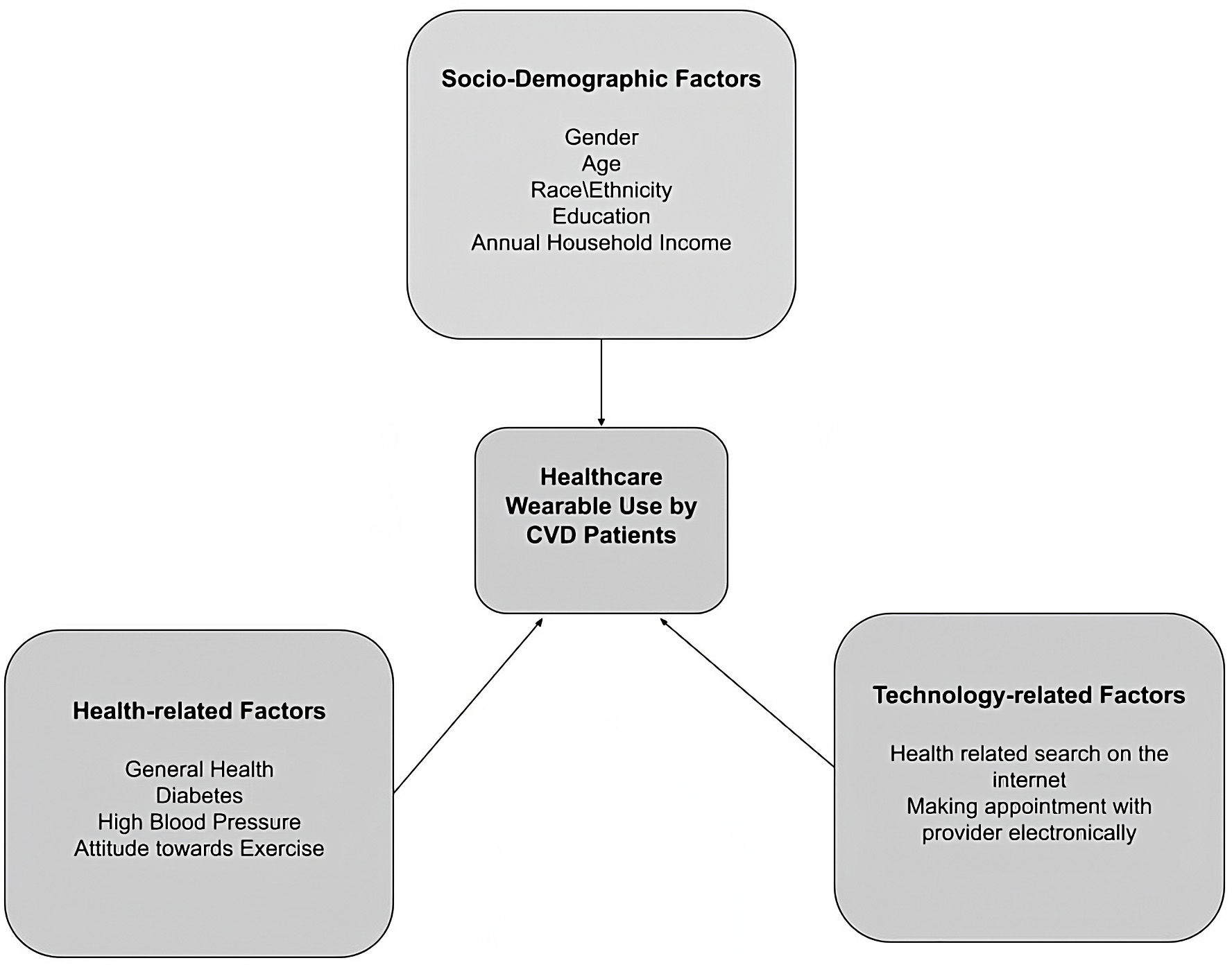 Fig. 1.Key factors associated with healthcare wearable use among cardiovascular diseases (CVD) patients.