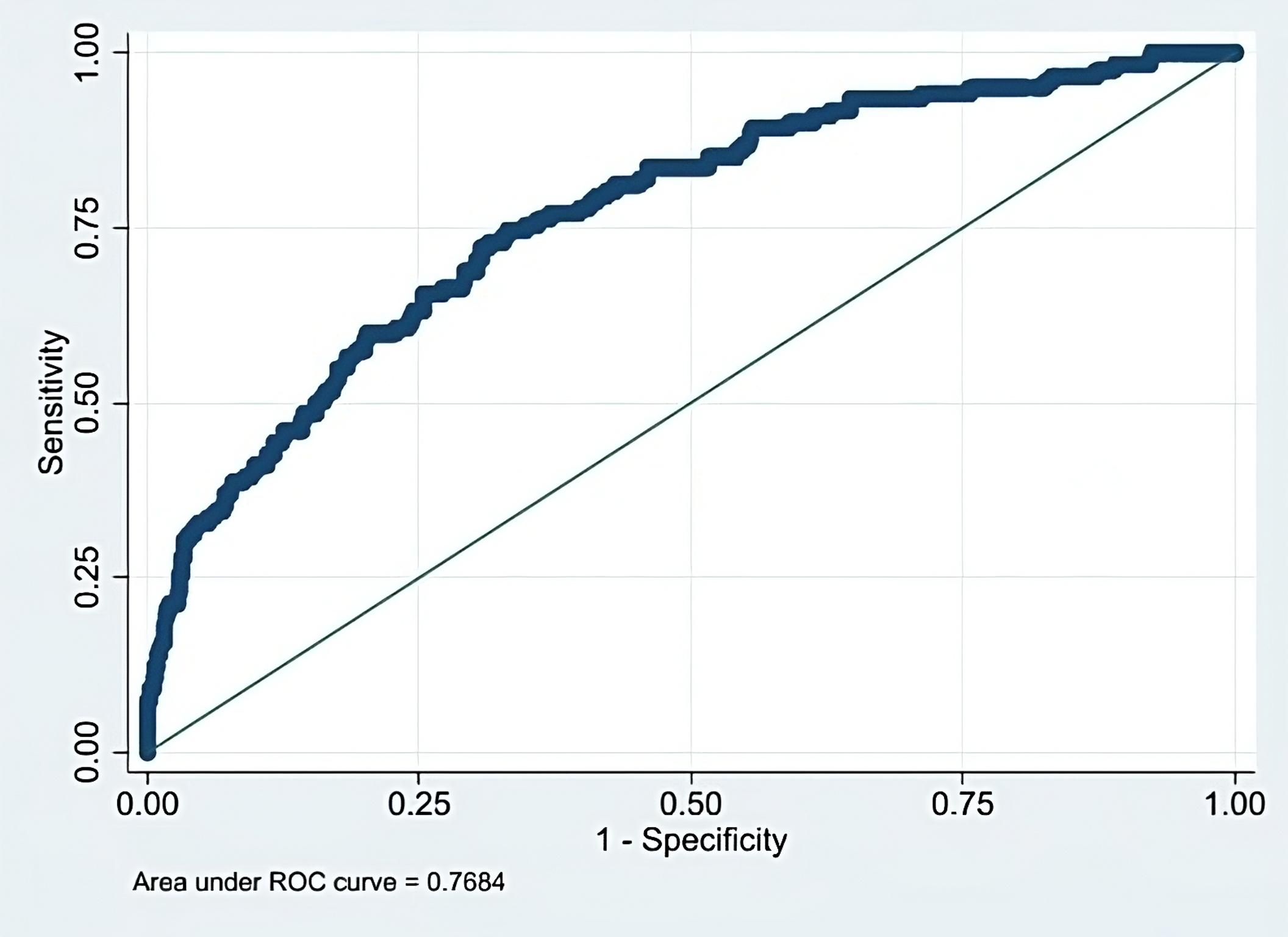 Fig. 2.Receiver operating characteristic (ROC) curve for logistic regression analysis.