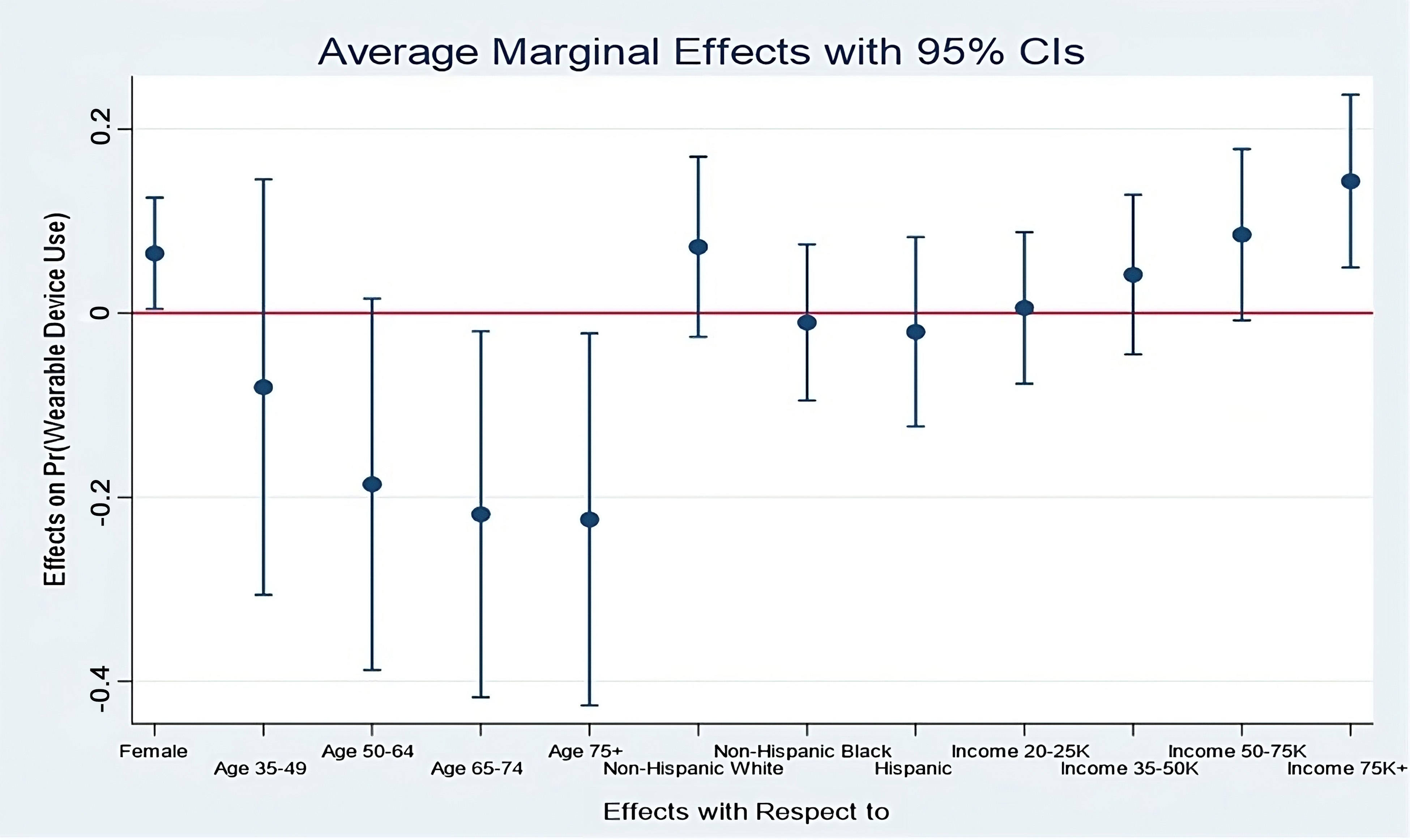Fig. 3.Average marginal effects of key demographic variables on wearables use by CVD patients. CI, confidence intervals; CVD, cardiovascular diseases.