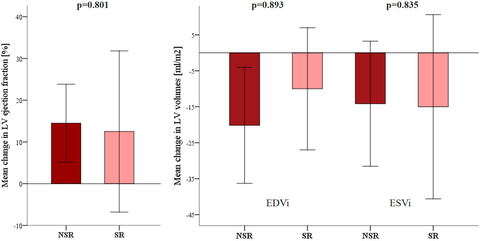 Legend: SR, sinus rhythm group; NSR, non-sinus rhythm group; LVEF, left
