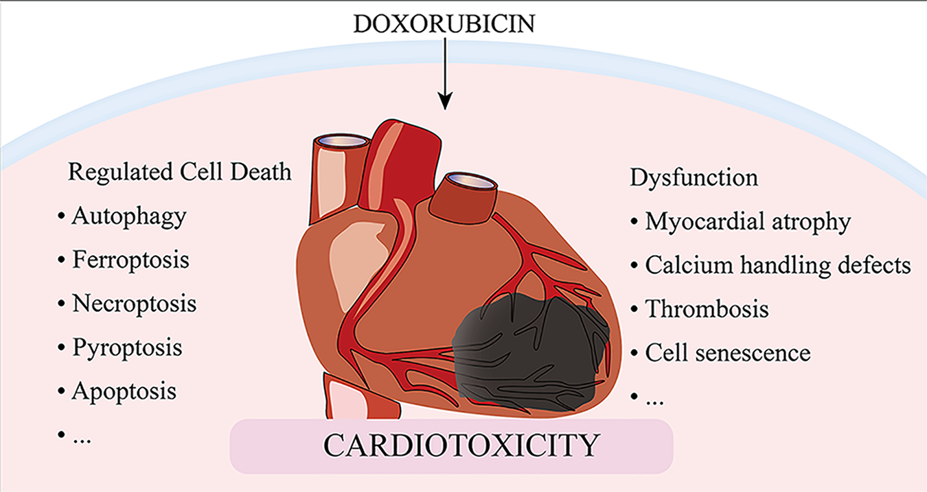 Apart from drastic cell death, DOX also induces relatively mild cardiomyocytes dysfunction that exacerbates its cardiotoxicity. In addition to the classical manifestations of myocardial cell dysfunction caused by oxidative stress and mitochondrial dysfunction, there are also some recently focused pathological processes including myocardial atrophy, Ca