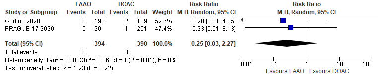 Fig. 3.Forrest plot comparing LAAO to DOAC for the incidence of systemic embolism.