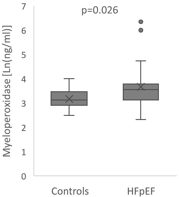 Our study corroborates their finding that MPO is elevated in HFpEF patients