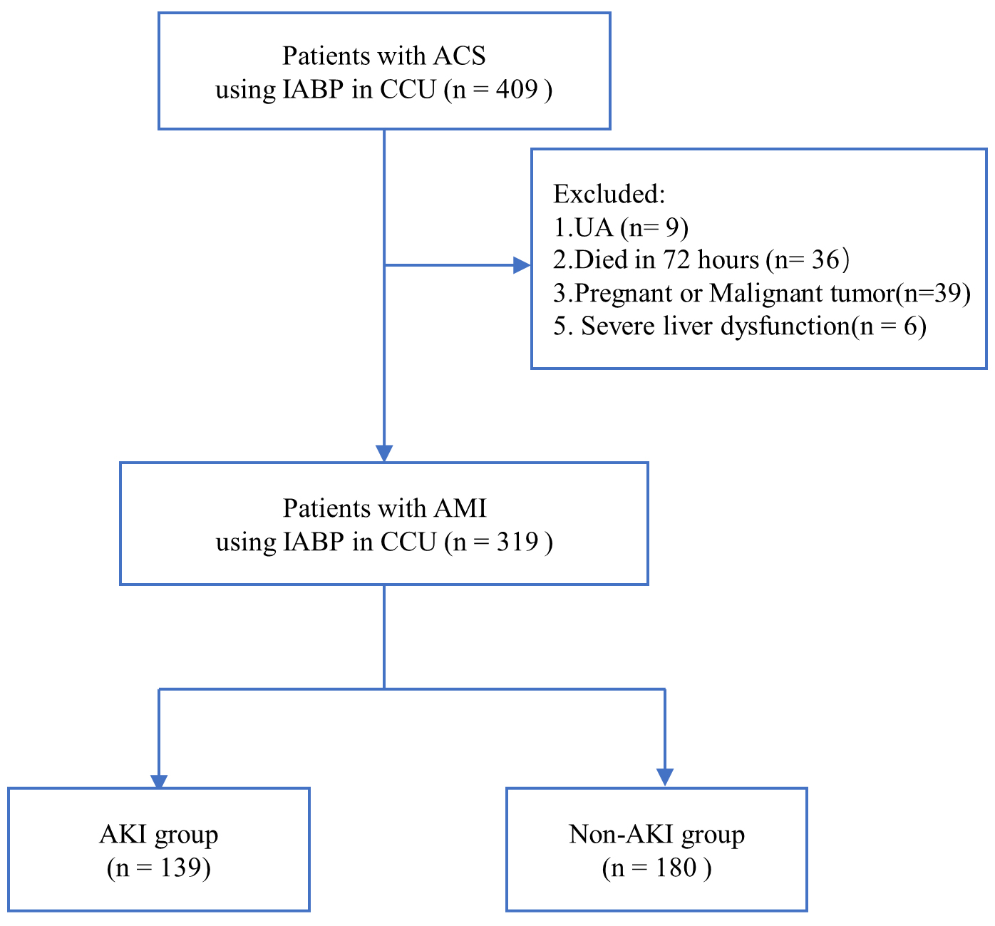 with acute myocardial infarction (AMI) after undergoing intra-aortic balloon pump
