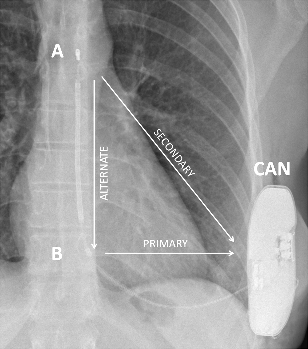 Fig. 1.Schematic representation of the three sensing vectors available in the S-ICD system. S-ICD, subcutaneous implantable cardioverter-defibrillator.