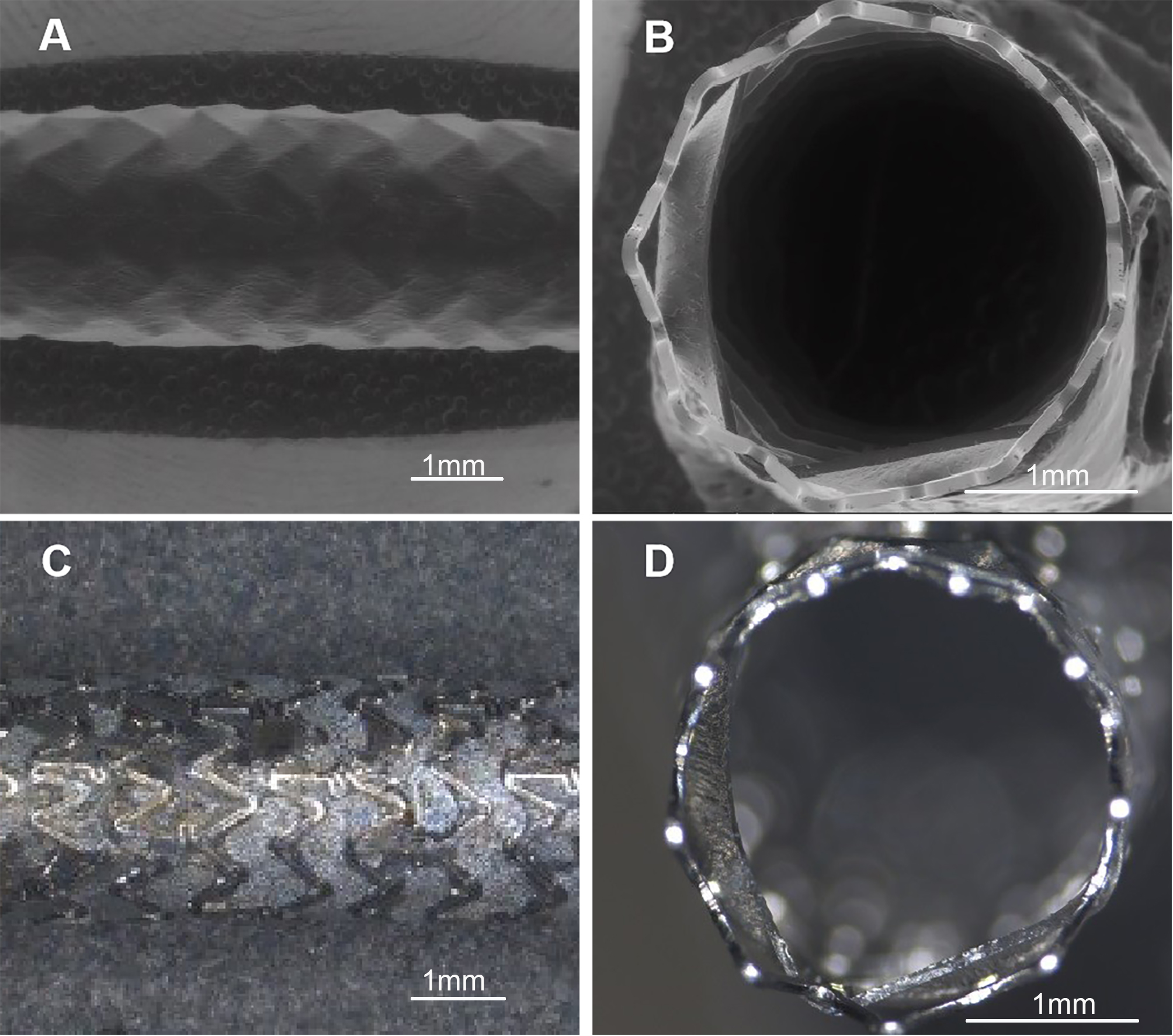Fig. 1.Microphotographs and digital photographs of covered stent.