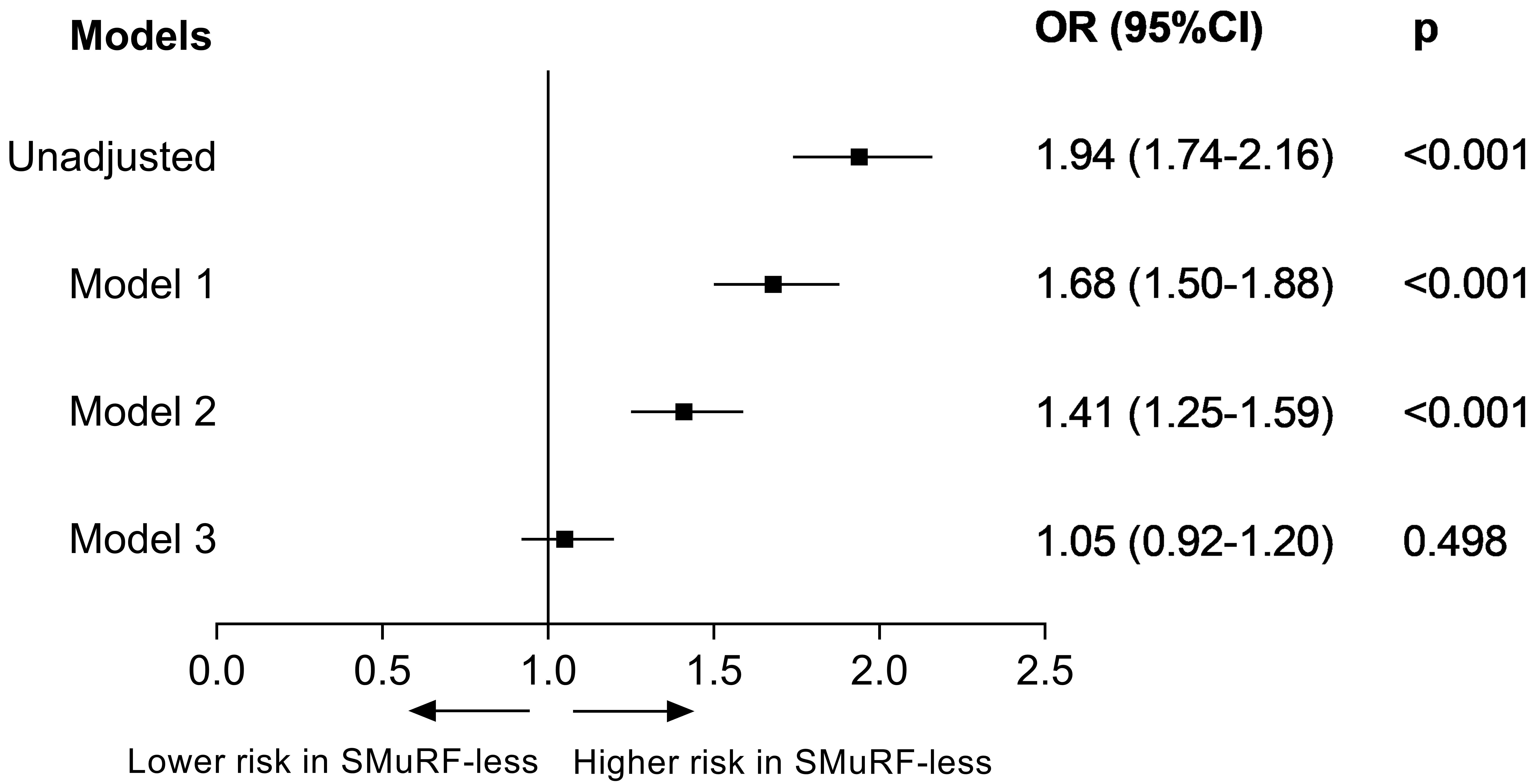 SMuRFs. Model 1: adjusted for age and sex; Model 2: