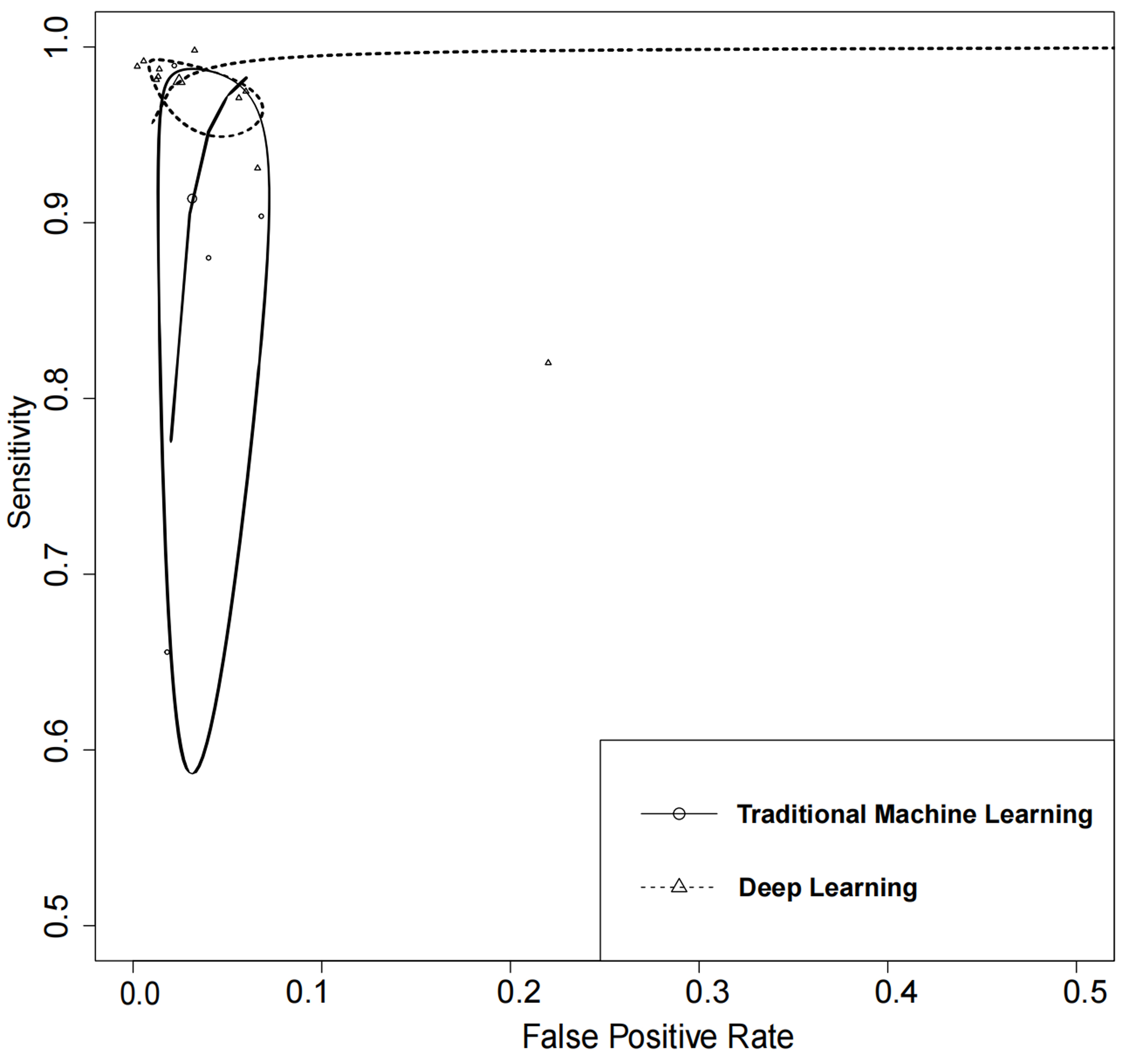 Fig. 5.Summary of receiver operating characteristics curves of traditional machine learning and deep learning.