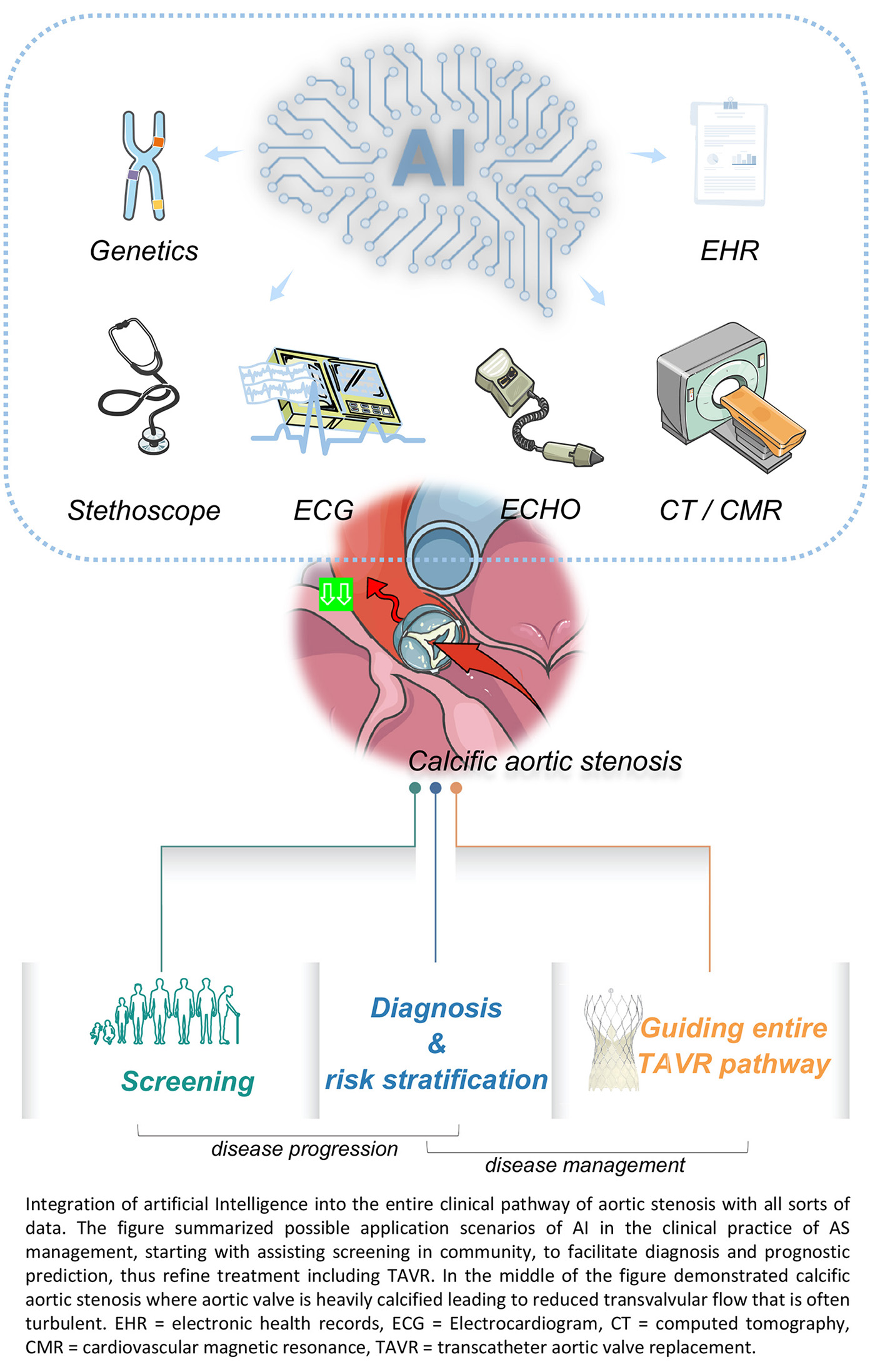YXZ, MYW, ELZ and YJW conceived of the idea of the review and constructed the outline. YJW encouraged YXZ to investigate the application of artificial intelligence in clinical practice of aortic stenosis and supervised the findings of this work. YXZ wrote the manuscript with support from MYW, ELZ and YJW. YXZ, MYW, ELZ and YJW reviewed the final manuscript critically for important intellectual content before submission and are accountable for all aspects of the work in ensuring that questions related to the accuracy or integrity of any part of the work are appropriately investigated and resolved.