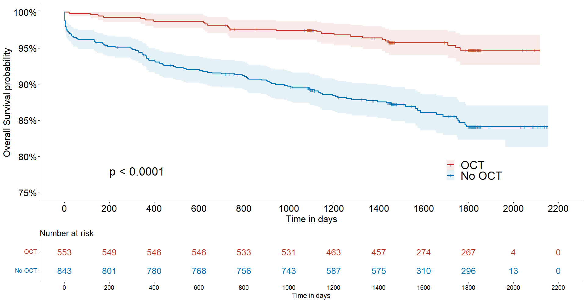 Kaplan–Meier survival curves in patients with and without OCT guidance. OCT, optical coherence tomography.