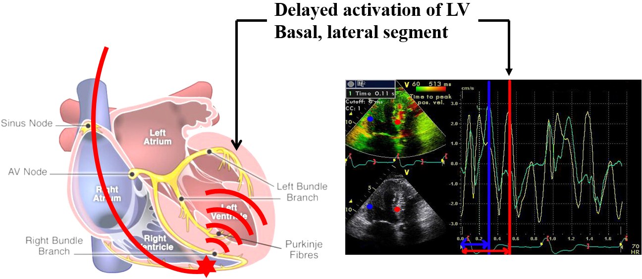Fig. 2.Right ventricular pacing induced left ventricular dyssynchrony. LV, left ventricular.