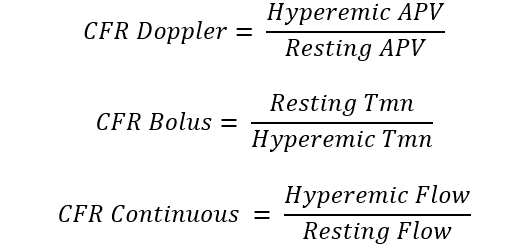 between hyperaemic and resting coronary flow, named CFR [79]. This proportion
