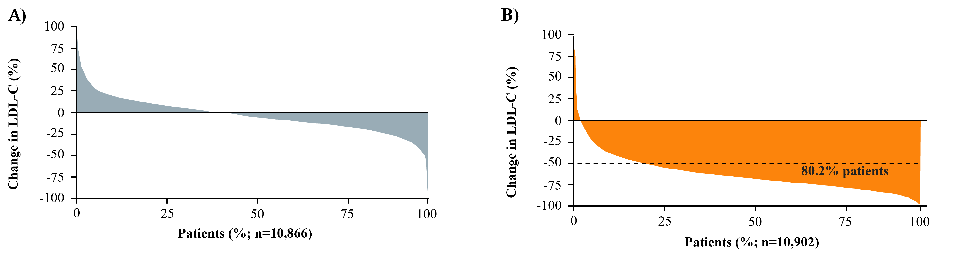 LDL-C from baseline. (A) Week 4 in Placebo Group of FOURIER. (B) Week 4 in