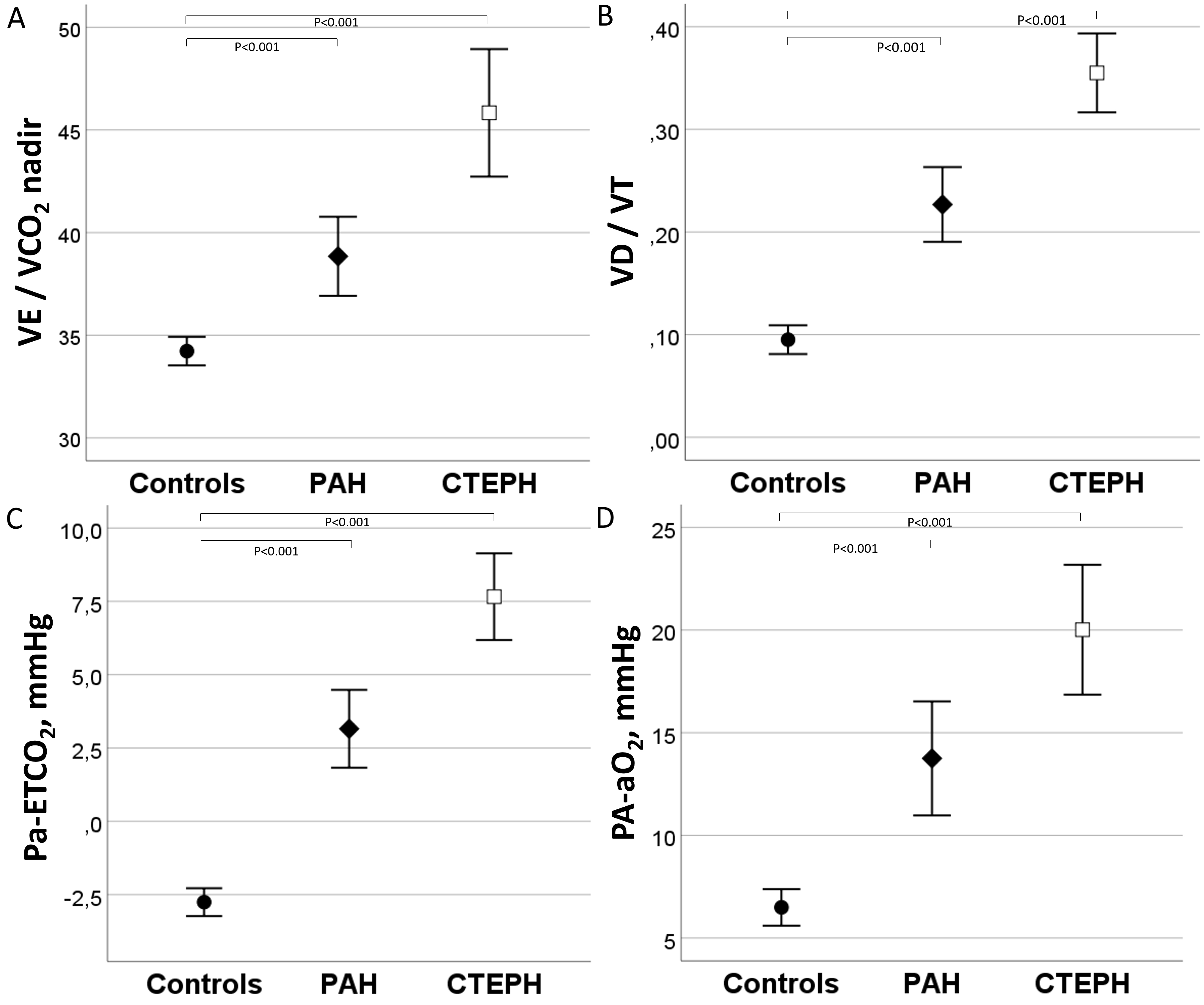 patients with PAH, CTEPH, and control subjects allowed us to compare groups;